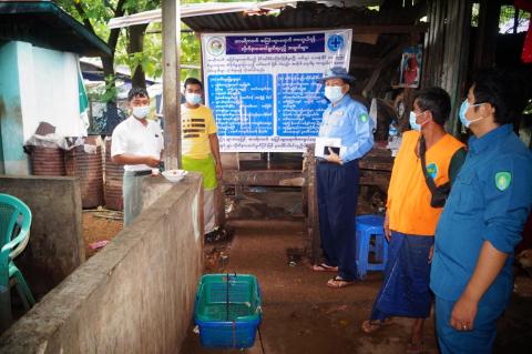ကြာအင်းဆိပ်ကြီးမြို့ မြို့မဈေးအတွင်း၌ အာဖရိကဝက်အပြင်းဖျားရောဂါ အသိပညာပေးခြင်း ဗီနိုင်းပိုစတာကပ်ခြင်းနှင့် လက်ကမ်းစာစောင်များဖြန့်ဝေ