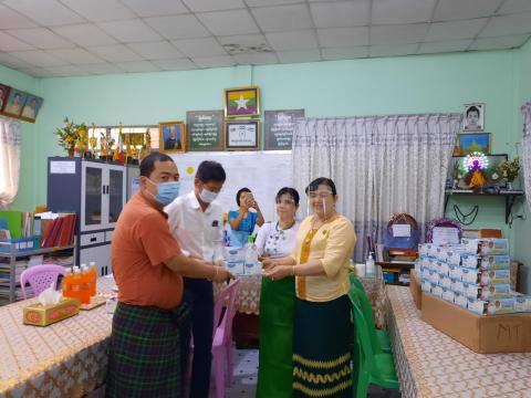 ကျောက်တံတားမြို့နယ်ရှိ အခြေခံပညာကျောင်းများသို့ နှာခေါင်းစည်း(Mask)များနှင့် လက်သန့်ဆေးရည်ဗူးများ လာရောက် လှူဒါန်း