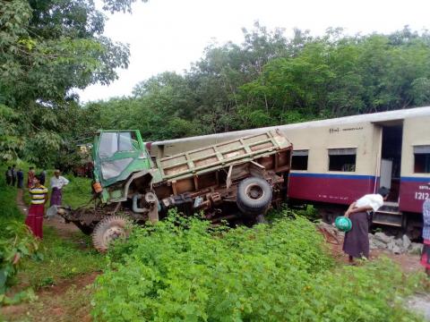 ရေးမြို့နယ်၊ လမိုင်းမြို့ ဘေးလမိုင်းကျေးရွာ နှစ်ကရင်ရွာအ၀င် မီးရထားနှင့် ကျောက်သယ်ကားမတော်တဆတိုက်မှုဖြစ်ပွား