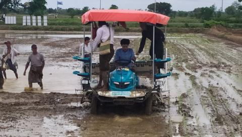 ဒီပဲယင်းမြို့နယ် ကြခတ်ကျေးရွာ အဆင့်မြင့်လယ်ယာမြေတွင် မိုးစပါးကောက်စိုက်စက်ဖြင့် စိုက်ပျိုးခြင်း ကွင်းသရုပ်ပြပွဲကျင်းပ