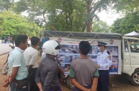 မန္တလေးတိုင်းဒေသကြီး၊ ကျောက်ဆည်မြို့နယ်တွင် ယာဉ်မတော်တဆအဖြစ်များသည့် မဟာရွှေသိမ်တော်ဘုရားဝင်ပေါက်အတွက် ရန်ကုန်-မန္တလေးကားလမ်းမကြီးတွင် အမှတ် (၉၂) ယာဉ်ထိန်းတပ်ဖွဲ့စုမှ တပ်ဖွဲ့စုမှူး ရဲအုပ်ကျော်စိုးလွင်နှင့် ဝန်ထမ်းများသည် ယမန်နေ့ မွန်းလွဲ (၁) နာရီက ယာဉ်စည်းကမ်း၊ လမ်းစည်းကမ်း လိုက်နာမှုအားနည်းသူများအား အရေးယူမှုမရှိဘဲ ပညာပေးလုပ်ငန်းများ ဆောင်ရွက်ပေးခဲ့ကြောင်း သိရှိရသည်။