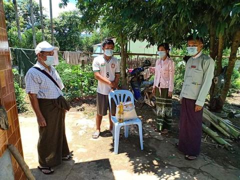 တာလေမြို့၌ Home Quarantine ပြုလုပ်ထားသော နေရပ်ပြန်ပြည်သူများအား အခြေခံ စားသောက်ကုန် ပစ္စည်းများထောက်ပံ့ပေးအပ်