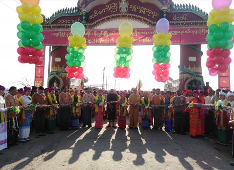 ရှမ်းပြည်နယ်(တောင်ပိုင်း)၊ လင်းခေးခရိုင် မိုးနဲမြို့နယ်တွင် ၂၀၁၈-၂၀၁၉ ဘဏ္ဍာရေးနှစ် မြို့မြေတိုင်းတာရေး စီမံချက်အရ ပေါ့မိုင်းရပ်ကွက် အကွက် အမှတ် (၁၃)တွင် မြေယာပိုင်ဆိုင်မှု စာရင်းကောက်ယူခဲ့ပြီး နှစ်ရှည်မြို့ မြေငှားဂရန် ဒုတိယအကြိမ်ပေးအပ်ပွဲကို ယနေ့နံနက် ၉ နာရီ အချိန်က ပေါ့မိုင်းရပ်ကွက် မဟာသုခချမ်းသာကြီး ဘုန်းတော်ကြီးကျောင်း၌ ကျင်းပရာ လင်းခေးခရိုင်ခရိုင်အုပ်ချုပ်ရေးမှူး ဦးနိုးဝေက အဖွင့်အမှာစကား ပြောကြား ခဲ့သည်။
