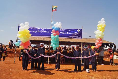 ပအိုဝ်းအမျိုးသားနေ့အထိမ်းအမှတ် အလွတ်တန်းဖိတ်ခေါ် အမျိုးသား၊ အမျိုးသမီး ဘောလုံးပြိုင်ပွဲ ဖွင့်ပွဲအခမ်းအနားကို ပအိုဝ်းကိုယ်ပိုင်အုပ်ချုပ်ခွင့်ရဒေသ ပင်လောင်းမြို့နယ်၊ နောင်တရားမြို့ စန္တာခမ်း ဘက်စုံဖွံ့ဖြိုးရေးကွင်း၌ ကျင်းပရာ ပင်လောင်းမြို့နယ် မဲဆန္ဒနယ်အမှတ်(၁) ပြည်နယ် လွှတ်တော်ကိုယ်စားလှယ် ဦးခွန်လှဆန်းနှင့် ဘေားလုံးပြိုင်ပွဲဖြစ်မြောက်ရေးဥက္ကဋ္ဌ ဦးခွန်ဖိုးစိန်တို့က ယနေ့ နံနက် ၁၁ နာရီခွဲတွင် ဖဲကြိုးဖြတ်ဖွင့်လှစ်သည်။