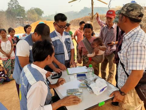 မိုင်းဖြတ်မြို့၌ မြို့နယ်ဘေးအန္တရာယ်ဆိုင်ရာစီမံခန့်ခွဲမှုဦးစီးဌာနမှ မီးဘေးသင့်ပြည်သူများအား ထောက်ပံ့ငွေနှင့် ပစ္စည်းပေးအပ်