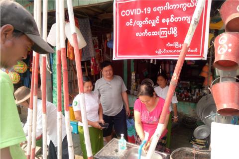 သီပေါမြို့မစျေး၌ ကိုရိုနာဗိုင်းရပ်စ် ကြိုတင်ကာကွယ်ရေးအတွက် လက်ဆေးရန်နေရာ (၄)ခုထားရှိ