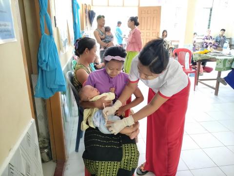 ရွှေသောင်ယံမြို့ ကျေးလက်ကျန်းမာရေးဌာနခွဲတွင် မွေးစနှစ်လမှတစ်နှစ်ခွဲအထိ ကလေးငယ်များအား ပုံမှန်ကာကွယ်ဆေးများထိုးနှံပေး