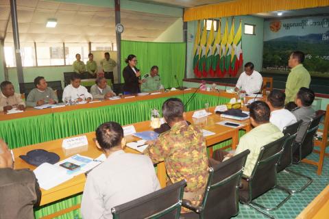 မန္တလေးတိုင်းဒေသကြီး၊ အစိုးရအဖွဲ့ လူမှုရေးရာဝန်ကြီး ဦးအောင်ကျော်မိုးသည် ခရိုင်စီမံခန့်ခွဲရေးနှင့် အုပ်ချုပ်ရေးကော်မတီဥက္ကဋ္ဌနှင့်အဖွဲ့ဝင်များ၊ ခရိုင်ရွေးကောက်ပွဲကော်မရှင်အဖွဲ့ တာဝန်ရှိသူများလိုက်ပါလျက် ဒီဇင်ဘာ ၁ ရက်နေ့နံနက် (၉)နာရီက ကျောက်ပန်းတောင်းမြို့နယ် အထွေထွေအုပ်ချုပ်ရေးဦးစီးဌာနရုံးသို့ ရောက်ရှိ၍ စကားဝါမြေခန်းမတွင် ခရိုင်နှင့်မြို့နယ်အဆင့် တာဝန်ရှိသူများအား တွေ့ဆုံပြီး၊ ပါတီစုံဒီမိုကရေစီအထွေထွေရွေးကောက်ပွဲအောင်မြင်စွာ ကျင်းပနိုင်ရေးကိစ္စရပ်များ၊ မဲစာရင်းများ တိကျမှန်ကန်မှုရှိစေရေးနှင့် ပြည်သူများ စိတ်ပါဝင်စားစွာ မဲစာရင်းလာရောက်ကြည့်ရှုရေး အစရှိသည်တို့ကို ဆွေးနွေးမှာကြားပြီး၊ ခရိုင်နှင့်မြို့နယ် တာဝန်ရှိသူများ၏ တင်ပြချက်များအပေါ် ပြန်လည်သုံးသပ်ဆွေးနွေးသည်။