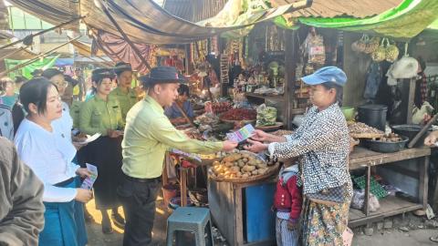 ပေါက်ခေါင်းမြို့နယ်၌ "ဒို့အတူတူမဲပေးကြမယ်" သတင်းစကား လက်ကမ်းစာစောင်များ ဖြန့်ဝေ