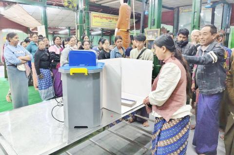 မြို့နယ်ရွေးကောက်ပွဲကော်မရှင်အဖွဲ့ခွဲက မဲပေးသည့်စက်ဖြင့် ဆန္ဒမဲပေးနည်း သရုပ်ပြပွဲပြုလုပ်