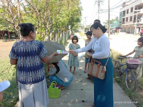 ဇေယျာသီရိမြို့နယ်၌ “ဒို့အတူတူမဲပေးကြမယ်” ရွေးကောက်ပွဲဆိုင်ရာအသိပညာပေးလက်ကမ်း စာစောင်များ ဖြန့်ဝေ