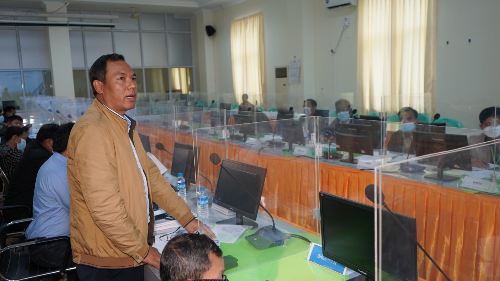 ဆက်လက်၍ ဟားခါးမြို့သန့်ရှင်းသာယာလှပရေးကော်မတီ ဒုတိယဥက္ကဋ္ဌ၊ ပြည်နယ်ရသုံးမှန်းခြေ ငွေစာရင်းဦးစီးဌာန ပြည်နယ်ဦးစီးမှူး ဦးကျော်ဇင်ဦးက တော်လှန်ရေးပန်းခြံ၊ ဂေါက်ကွင်း ၊ View Point နှင့် လွတ်လပ်ရေးကျောက်တိုင် ပြုပြင်နိုင်ရေးအတွက် လျာထားချက်များ၊ ကုန်ကျမည့် ခန့်မှန်းရန်ပုံငွေ တွက်ချက်မှု၊ ဒေသပေါက်စျေးနှင့် တွက်ချက်မှုအရ ခန့်မှန်းကုန်ကျငွေ၊ ရန်ပုံငွေလို အပ်ချက် ဆောင် ရွက်နိုင်မှုအခြေအနေနှင့် ဆွေးနွေးဆုံးဖြတ်ရန်အချက်များကို လုပ်ငန်းတစ်ခုချင်းစီအလိုက် Power Point ဖြင့် ရှင်းလင်းတင်ပြသည်။