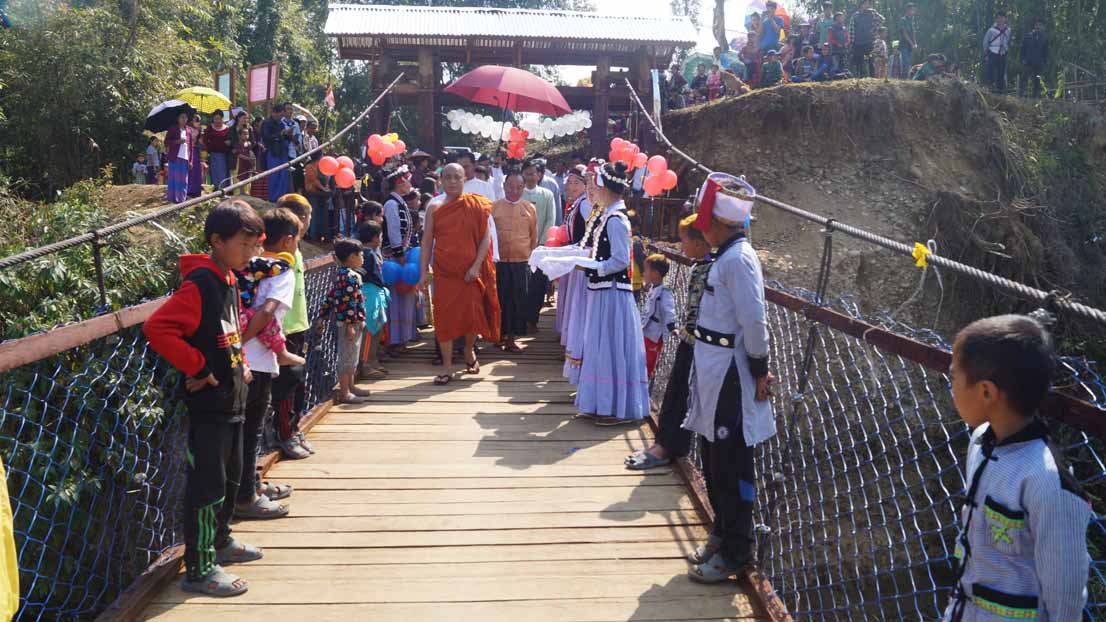 ရှေးဦးစွာ ဖတ်မာကြိုးတံတားသစ်ကို CB Bank ဥက္ကဋ္ဌ ဦးခင်မောင်အေး၊ ပြည်နယ်လွတ်တော်ကိုယ်စားလှယ် ဦးယောဆီ၊ ခရိုင်အုပ်ချုပ်ရေးမှူး ဦးသန့်ဇင်၊ မြို့နယ် အုပ်ချုပ်ရေးမှူး ဦးသန့်စင်၊ တံတားမတည်အလှူရှင် ကို၀မ်း(ခ)ကိုဇော်လေးမြင့်တို့က တံတားသစ်အား ဖဲကြိုးဖြတ်ဖွင့်လှစ်ပေးကြပြီး ဧည့်သည်တော်များနှင့် တက်ရောက် လာသူများက တံတားကြံ့ခိုင်မှုအခြေအနေများကို ကြည့်ရှုအားပေးကြသည်။