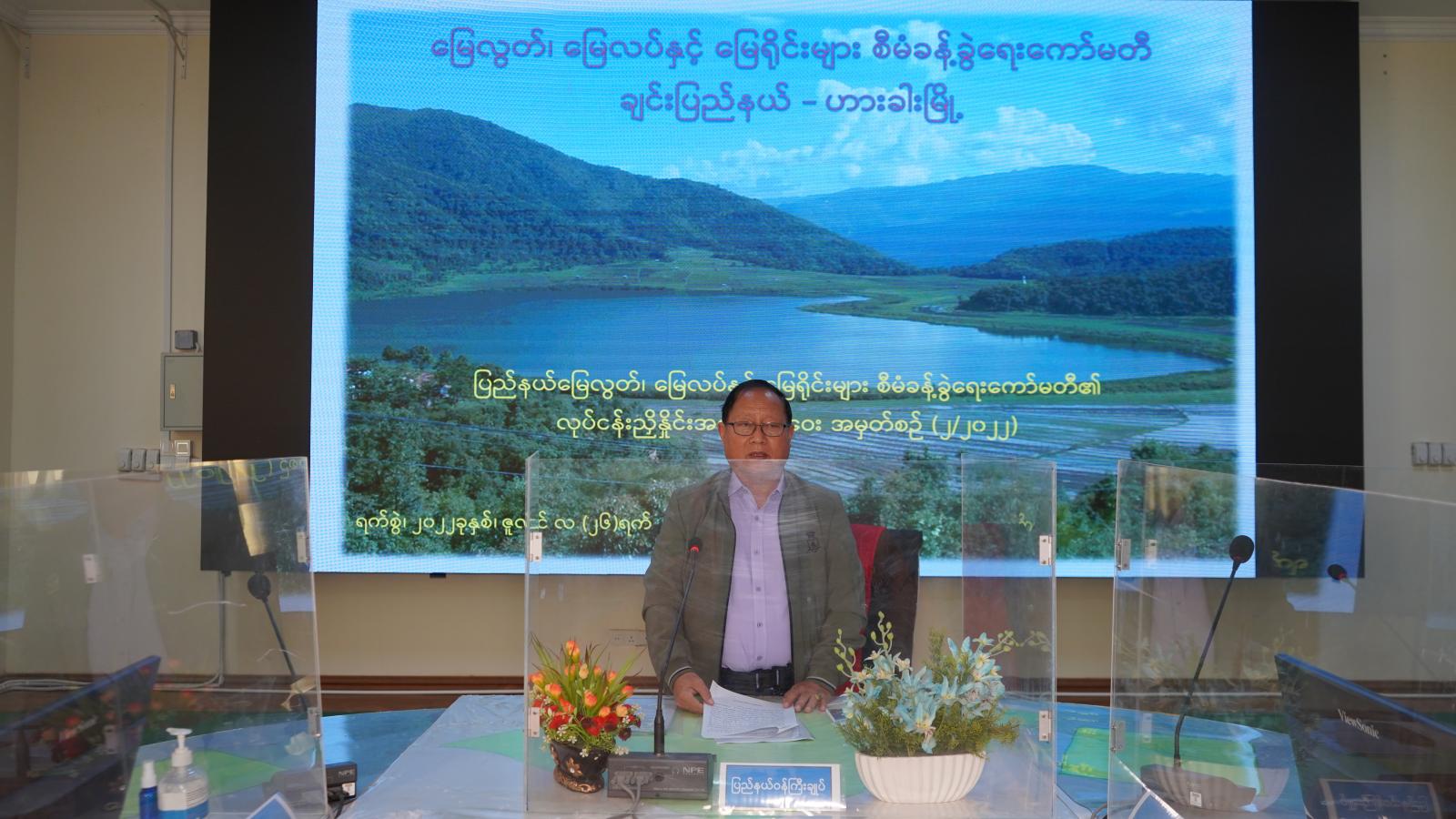ချင်းပြည်နယ် မြေလွတ်၊ မြေလပ်နှင့် မြေရိုင်းများ စီမံခန့်ခွဲရေးကော်မတီ၏ (၂/၂၀၂၂) လုပ်ငန်း ညှိနှိုင်းအစည်းအဝေးကို ယမန်နေ့ နံနက် ၁၀ နာရီက ဟားခါးမြို့၊ ပြည်နယ်အစိုးရအဖွဲ့ရုံး အစည်း အဝေးခန်းမ၌ ကျင်းပရာ ပြည်နယ်ဝန်ကြီးချုပ် ဦးငွန်ဆန်းအောင် တက်ရောက်အမှာစကား ပြောကြားသည်။