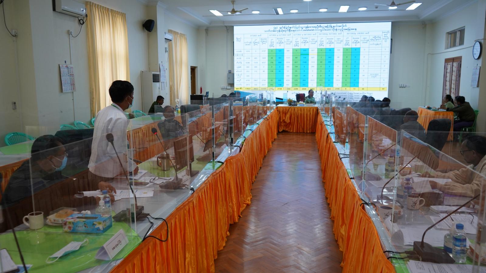 ဆက်လက်၍ ချင်းပြည်နယ်အစိုးရအဖွဲ့ရုံး ဒုတိယညွှန်ကြားရေးမှူး ဦးမြင့်လွင်က ယခင်အပတ် အစည်းအဝေး ဆုံးဖြတ်ချက်များကိုလည်းကောင်း၊ ပြည်နယ်ပြည်သူ့ကျန်းမာရေးနှင့် ကုသရေးဦးစီး ဌာနမှူး ဒေါက်တာမြင့်မိုရ်စိုးက ချင်းပြည်နယ်အတွင်း ကိုဗစ်−၁၉ ရောဂါကာကွယ်၊ ထိန်းချုပ်ရေး လုပ်ငန်းများ ဆောင်ရွက်မှုအခြေအနေ၊ အသက်(၅)နှစ်မှ (၁၂)နှစ်အထိနှင့် အသက်(၁၂)နှစ်မှ (၁၈)နှစ်အထိ ကျောင်းသား/သူများ ကိုဗစ်−၁၉ ရောဂါကာကွယ်ဆေး ထိုးနှံပြီးစီးမှုနှင့် အသက် (၁၈)နှစ်နှင့်အထက် ပြည်သူများ ကိုဗစ်−၁၉ ရောဂါကာကွယ်ဆေး ထိုးနှံပြီးစီးမှုနှင့် ကိုဗစ်−၁၉ ရောဂါကာကွယ်ဆေး ရရှိ၊သုံးစွဲ၊လက်ကျန် စာရင်းများကိုလည်းကောင်း၊ တက်ရောက်လာကြသည့် ဌာနဆိုင်ရာ တာဝန်ရှိသူများက ကိုဗစ်−၁၉ ရောဂါကာကွယ်ဆေး ဆက်လက်ထိုးနှံပေးနေမှုနှင့် လုပ်ငန်းလိုအပ်ချက်များကိုလည်းကောင်း ရှင်းလင်းတင်ပြကြသည်။