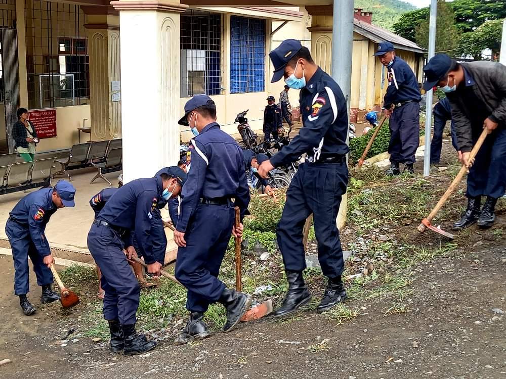 အဆိုပါဌာနဆိုင်ရာများ စုပေါင်းသန့်ရှင်းရေးဆောင်ရွက်ရာ၌ မြို့နယ်စီမံအုပ်ချုပ်ရေးအဖွဲ့ ဥက္ကဋ္ဌ ဦးသိန်းအောင်နှင့် အဖွဲ့ဝင်များ၊ မြို့နယ်အဆင့်ဌာနဆိုင်ရာများနှင့် ဝန်ထမ်းများ၊ မြို့နယ်ကျန်းမာရေး ဝန်ထမ်းများ စုစုပေါင်းအင်အား ၂၁၀ ဦးကျော် ခန့်က စုပေါင်းသန့်ရှင်းရေး ဆောင်ရွက်ခဲ့ကြကြောင်း သိရသည်။