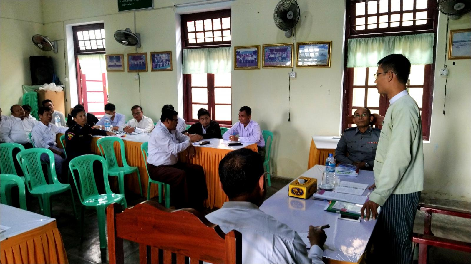 အစည်းအဝေးတွင် မြို့နယ်စီမံအုပ် ချုပ်ရေးအဖွဲ့ဥက္ကဋ္ဌ မြို့နယ်အုပ်ချုပ်ရေးမှူး ဦးကျော်သက်ထူးက လစဉ်အစည်းအဝေး ပြုလုပ်ရခြင်းရည်ရွယ်ချက်အား ရှင်းလင်းပြောကြားပြီး ဌာနဆိုင်ရာအလိုက် ဒေသဖွံ့ဖြိုးရေးလုပ်ငန်းများ၊ မိမိတို့ရုံးလုံခြုံရေး၊ အိမ်ထောင်စုလူဦးရေ စာရင်းမဲစာရင်းများ မှန်ကန်စေရေးအတွက် ဌာနဆိုင်များမှ ပူးပေါင်း ဆောင်ရွက်ပေးကြရန် လမ်းညွှန်မှာကြားသည်။