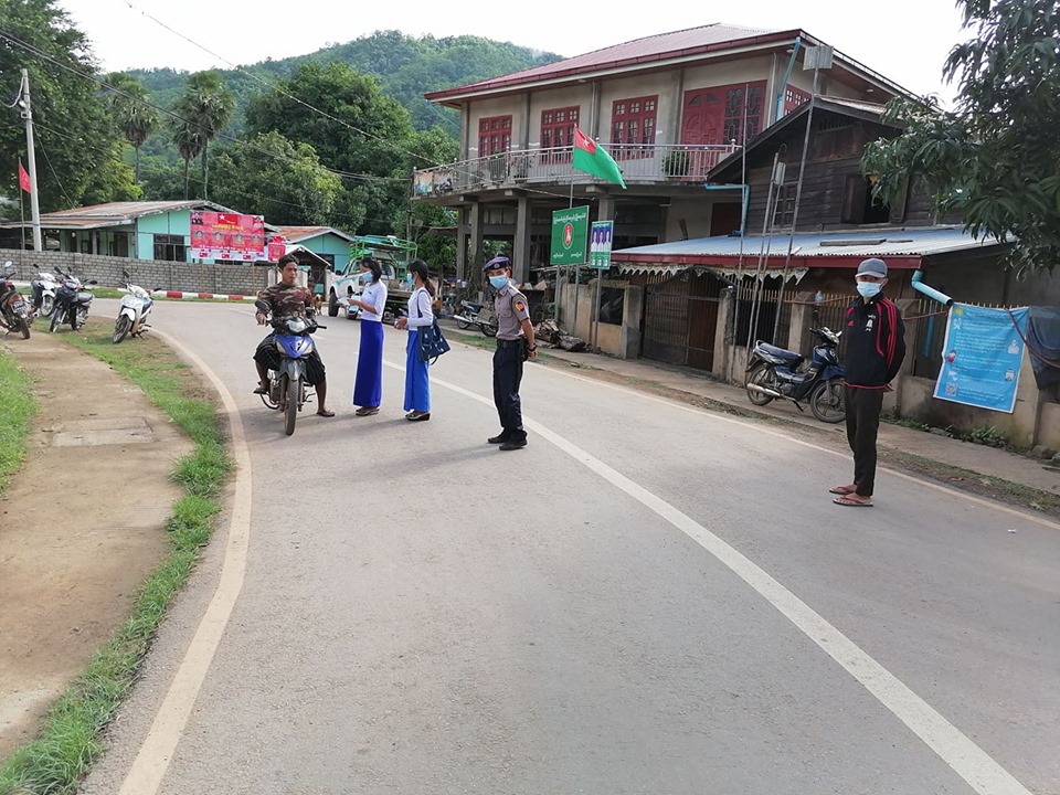 ထိုသို့ ဆောင်ရွက်ရာတွင် မြို့နယ် ကိုဗစ်-၁၉ ထိန်းချုပ်ရေးနှင့် အရေးပေါ်တုံ့ပြန်ရေး ကော်မတီဝင်များ ဖြစ်ကြသော မြိုနယ်အထွေထွေအုပ်ချုပ်ရေးဦးစီးဌာနမှ ဝန်ထမ်းများ၊ လူမှုဝန်ထမ်းဦးစီးဌာနမှ ဝန်ထမ်းများ၊ မြို့နယ်လူဝင်မှုကြီးကြပ်ရေးနှင့်ပြည်သူ့အင်အား ဆိုင်ရာ ဦးစီးမှူးရုံးမှ ဝန်ထမ်းများ၊ မြို့နယ်ကုသရေးနှင့် ပြည်သူ့ကျန်းမာရေးဦးစီးဌာနမှ ဝန်ထမ်းများ၊ မြို့နယ်မီးသတ်တပ်ဖွဲ့ဝင်များ၊ မြန်မာနိုင်ငံရဲတပ်ဖွဲ့နှင့် မြို့နယ် ကြက်ခြေနီ အဖွဲ့တို့ ပူးပေါင်း၍ ကိုဗစ်-၁၉ ရောဂါ ကြိုတင်ကာကွယ်ရေးအတွက် ဈေးပိုင်းရပ်ကွက် ဗိုလ်ချုပ်လမ်းနှင့် ဘုရင့်နောင်လမ်းဆုံတွင် သွားလာနေသော ပြည်သူများအား မိမိတို့ နေအိမ်ပြင်ပကို ထွက်ခွာသွားလာပါကမဖြစ်မနေ Mask တပ်ဆင်သွားလာရန်နှင့် ကျန်းမာရေးနှင့်အားကစားဝန်ကြီးဌာနမှ ထုတ်ပြန်ထားသော စည်းကမ်းချက်များနှင့်အညီ လိုက်နာဆောင်ရွက်သွားရန် အသိပညာပေးပြောကြားပြီး Mask တပ်ဆင်ခြင်းမရှိသော ပြည်သူများအား Mask(၂)ခုကိုငွေကျပ် (၁၀၀၀) နှုန်းဖြင့် ချက်ချင်းဝယ်ယူ တပ်ဆင်စေကာ ကြိုတင်ကာကွယ်ရေးလုပ်ငန်းများကို အရှိန်မြှင့်တင်ဆောင်ရွက်လျက်ရှိကြောင်း သိရ သည်။