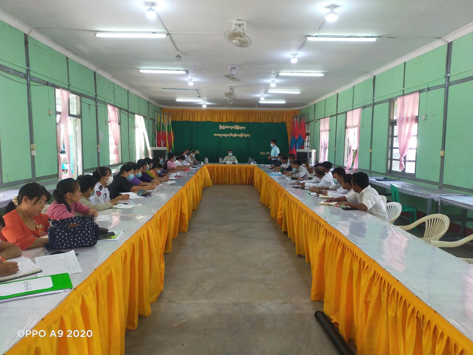 အစည်းအဝေးတွင် မြို့နယ်စီမံအုပ်ချုပ်ရေးအဖွဲ့ဥက္ကဋ္ဌ ဦးသန်းထွန်းအောင်က ဌာနဆိုင်ရာများအနေဖြင့် တည်ဆောက်ရေးလုပ်ငန်းများဆောင်ရွက်ရာတွင် အချိန်မီပြီးစီးရေးနှင့် ကုမ္ပဏီများမှ ဓာတ်သတ္တုအခွန်များ သတ်မှတ်ကာလအတွင်းပေးသွင်းရန်၊ ဆီထွက်သီးနှံနေကြာစိုက်ပျိုးရေးနဲ့ ပတ်သက်ပြီး ဌာနဆိုင်ရာ များအား တိုက်နယ်အလိုက်တာဝန်ပေးထားပြီးဖြစ်၍ စိုက်ပျိုးရေးဦးဌာန၊ လယ်ယာမြေစီမံခန့်ခွဲမှုနှင့် စာရင်းအင်းဦးစီးဌာနတို့နှင့်ပူးပေါင်း၍ ကွင်းဆင်း ဆောင်ရွက်ရန်၊ စိုက်ပျိုးစရိတ်ချေးငွေနှင့်ပတ်သက်၍ ဘဏ်ချေးငွေကြွေးကျန်ဆပ်ရန်ကျန်ရှိနေသည့် ကျေးရွာများမှ ပြန်လည်ပေးဆပ်နိုင်ရေးဆောင်ရွက်ရန်၊ ကိုဗစ်-၁၉ရောဂါကြိုတင် ကာကွယ်ရေးအတွက် ကာကွယ်ဆေးထိုးနှံကြရန်၊ Mask စနစ်တကျတပ်ဆင်ရန်၊ မဲစာရင်းမှန်ကန်မှုရှိစေရေးအတွက် မြေပြင်လူဦးရေ စာရင်း ကောက်ယူရာတွင် စာရင်းများ တိကျမှန်ကန်မှုရှိစေရေး အလေးထားဆောင်ရွက်ရန်၊ လုံခြုံရေးအထူးဂရုပြုရန်၊ ထူးခြားဖြစ်စဉ်များရှိပါက သက်ဆိုင်ရာသို့ သတင်းပေးပို့ခြင်းဆောင်ရွက်ရန်တို့ကို ဆွေးနွေးပြောကြားခဲ့သည်။