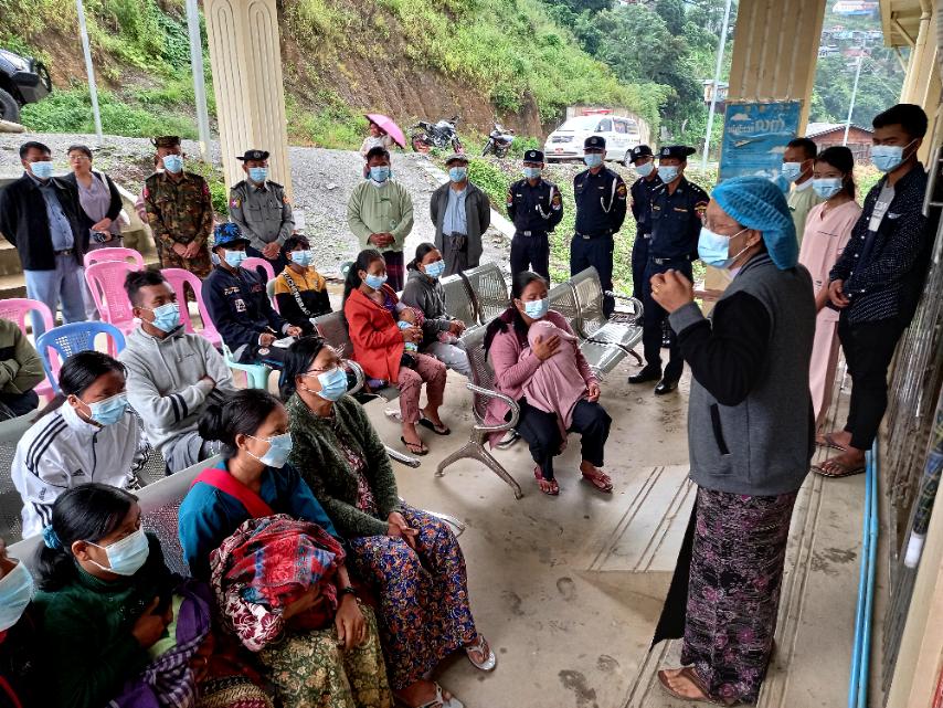 ထိုသို့ဆောင်ရွက်ရာတွင် စက်တင်ဘာ ၇ ရက်နှင့် ၈ ရက်နေ့တို့တွင် ချင်းပြည်နယ်အတွင်းရှိ ဟားခါးမြို့၊ တီးတိန်မြို့၊ တွန်းဇံမြို့၊ ကျီခါးမြို့နှင့် ခိုင်ကမ်းမြို့များရှိ စာသင်ကျောင်းများ၊ စျေးများ၊ လမ်းများ နှင့် လူစည်ကားရာနေရာများတွင် သက်ဆိုင်ရာ ခရိုင်၊ မြို့နယ်စီမံအုပ်ချုပ်ရေးအဖွဲ့ ဥက္ကဋ္ဌနှင့် တာဝန်ရှိသူများ၊ ဌာနဆိုင်ရာဝန်ထမ်းများ ပူးပေါင်း၍ နှာခေါင်းစည်းများကို ဒေသခံပြည်သူများ လက်ဝယ် အရောက်အခမဲ့ ဖြန့်ဝေခြင်း၊ မြို့ဝင်၊ မြို့ထွက်ဂိတ်များတွင် RDT Test Kit ဖြင့် စစ်ဆေးခြင်းနှင့် ကိုဗစ်−၁၉ ရောဂါ ကာကွယ်ရေးအတွက် တစ်ဦးနှင့်တစ်ဦး ခပ်ခွာခွာနေရန်၊ ပါးစပ်၊ နှာခေါင်းစည်းတပ်ဆင်ရန်၊ ချောင်းဆိုး နှာချေရာတွင် အုပ်၍ ဆိုးရန်၊ အခန်းများ လေဝင်လေထွက်ကောင်းအောင် ဖွင့်ထားရန်၊ လူစုလူဝေးရှောင်ရန်၊ တတ်နိုင်သမျှ အိမ်မှာသာနေပြီး အပြင်ထွက်သွားလာခြင်းကို ရှောင်ကြဉ်ရန်၊ လက်ကို ဆပ်ပြာနှင့် ရေတို့ဖြင့် စနစ်တကျ ဆေးကြောရန်၊ သံသယဖြစ်ဖွယ် ရောဂါလက္ခဏာများတွေ့ရှိပါက အနီးဆုံးကျန်းမာရေးဌာနသို့ ချက်ချင်းဆက်သွယ်ရန် စသည့် ကျန်းမာရေးဝန်ကြီးဌာနမှ ထုတ်ပြန်ထားသည့် စည်းမျဉ်စည်းကမ်းများကို အသံချဲ့စက်ဖြင့် အသိပညာပေးလုပ်ငန်းများကိုလည်း အရှိန်အဟုန်ဖြင့် ဆောင်ရွက်လျက်ရှိကြောင်း သိရသည်။