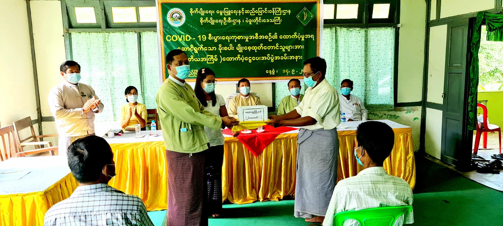 ဆက်လက်၍ မြို့နယ်ဦးစီးမှူး ဦးနေလင်းဇော်က ထောက်ပံ့ငွေပေးအပ်ရခြင်းနှင့် ပါတ်သက်၍ ရှင်း လင်းပြောကြားခဲ့ပြီး မြို့နယ်အုပ်ချုပ်ရေးမှူး ဦးမင်းနိုင်အောင် မှ ဒုတိယအကြိမ် ထောက်ပံ့ငွေ ကျပ် ၂၆၀ သိန်းအား မျိုးစေ့ထုတ်တောင်သူများကို ပေးအပ်ခဲ့ကြောင်း သိရသည်။