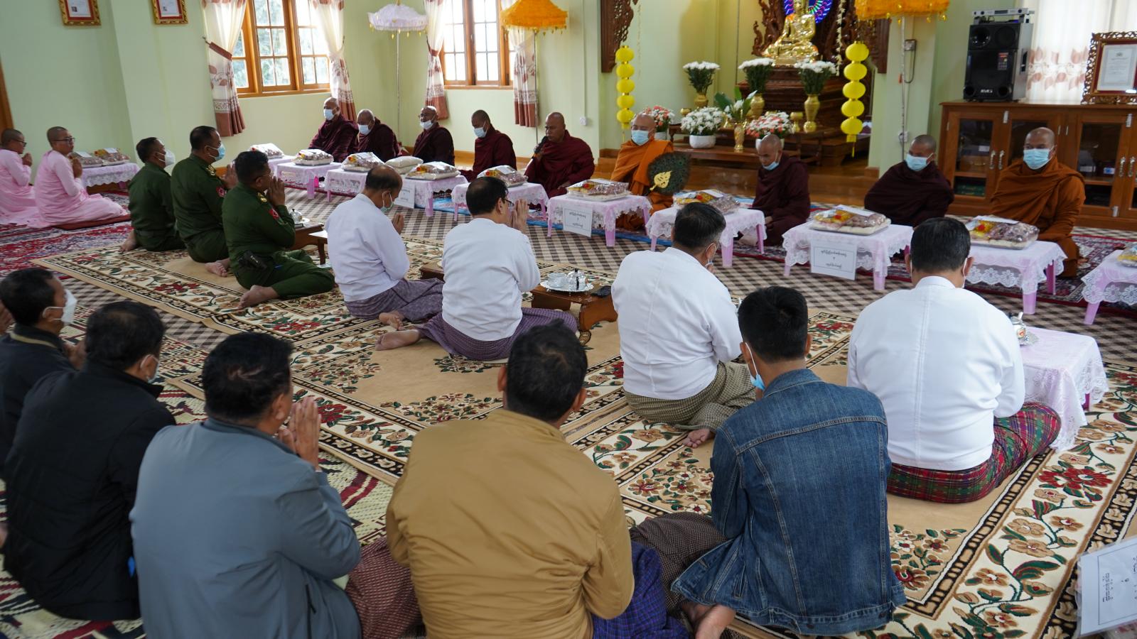 ထို့နောက် ဟားခါးမြိုု့နယ်အတွင်းရှိ ဘုန်းတော်ကြီးကျောင်းများနှင့် သီလရှင်ကျောင်းများတွင် သီတင်းသုံး သာသနာပြုလျက်ရှိကြသော သံဃာတော်များ၊ သီလရှင်ဆရာလေးများအား ချင်းပြည်နယ်အစိုးရအဖွဲ့မှ ပေးအပ်လှူဒါန်းသည့် ဆန်၊ ဆီ၊ ဆား၊ ကြက်သွန်၊ ခေါက်ဆွဲခြောက်နှင့် အလှူတော်ငွေများကို အနောက်မြောက်တိုင်းစစ်ဌာနချုပ် ဒုတိယတိုင်းမှူး ဗိုလ်မှူးချုပ် မျိုးထွဋ်လှိုင်၊ ပြည်နယ်တရားလွှတ်တော်တရားသူကြီးချုပ် ဦးနေစိုး၊ ပြည်နယ်လုံခြုံရေးနှင့်နယ်စပ်ရေးရာဝန်ကြီး ဗိုလ်မှူးကြီး ဟန်ဝင်းအောင်၊ လမ်းပန်းဆက်သွယ်ရေးဝန်ကြီး ရဲမှူးကြီး စိုးလွင်မိုး၊လူမှုရေးရာဝန်ကြီး ဦးသန့်ဇင်၊ ပြည်နယ်အစိုးရအဖွဲ့အတွင်းရေးမှူး ဦးမောင်မောင်ဆန်းနှင့် စစ်ဗျူဟာ(အခြေချ) ဟားခါးစစ်ဗျူဟာမှူး ဗိုလ်မှူးကြီးစောထွန်းတို့က သံဃာတော် အရှင်သူမြတ်များထံသို့ နေ့ဆွမ်းဆက်ကပ် လှူဒါန်းကြသည်။