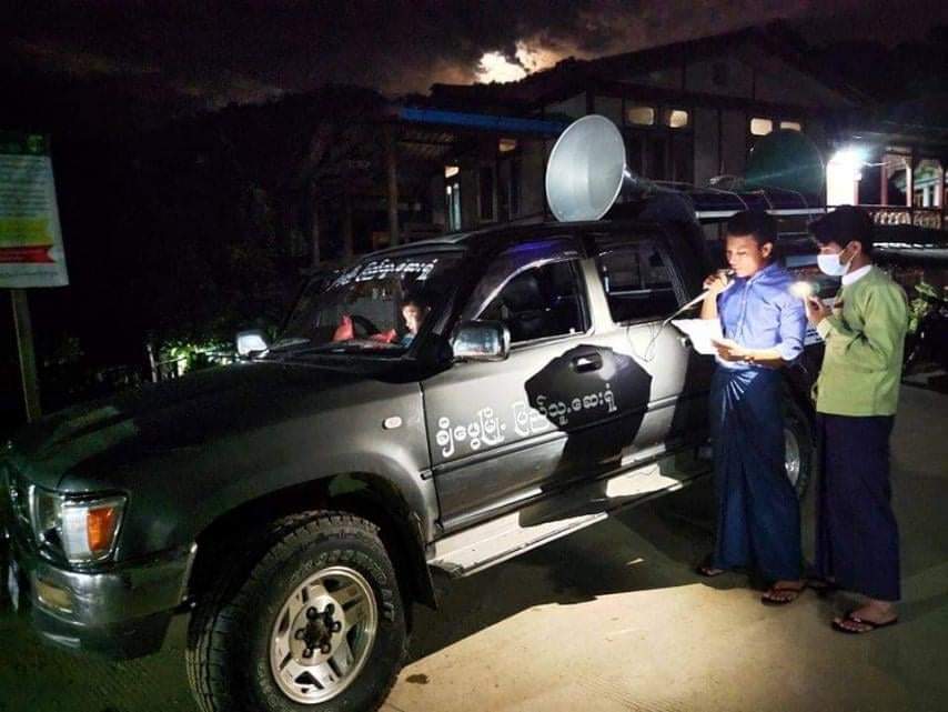 ဆက်လက်၍ ညအထွက်ရန် အမိန့်အမှတ် (၄၇/၂၀၂၀)အရ နာရေးကိစ္စ၊ ကျန်းမာရေးနှင့် အရေးကြီးကိစ္စ ဆောင်ရွက်သူများမှအပ ည(၁၂)နာရီမှ နောက်နေ့နံနက်(၄)နာရီထိ ညမထွက်ရန်အမိန့် ရက်တိုး ထုတ်ပြန်ခြင်းနှင့် အများပြည်သူအကျိုးငှာ ရည်ရွယ် ထုတ်ပြန်ခြင်းဖြစ်သဖြင့် လိုက်နာရန် ပျက်ကွက်ပါက တည်ဆဲဥပဒေအရ အရေးယူခံရမည်ဖြစ်ကြောင်း၊ ထိုအမိန့် ကြေငြာချက်များ သည် စက်တင်ဘာလ(၁၆)ရက်နေ့မှ စ၍(၂)လအထိ အတည်ဖြစ်ကြောင်း၊ ဒေသခံပြည်သူများ ကျယ်ကျယ်ပြန့်ပြန့် သိရှိလိုက်နာ ဆောင်ရွက်သွားစေရန် အသံချဲ့စက်ဖြင့် အသိပေးနှိုးဆော်ခြင်းများ ဆောင်ရွက်ခဲ့ကြောင်း သိရသည်။