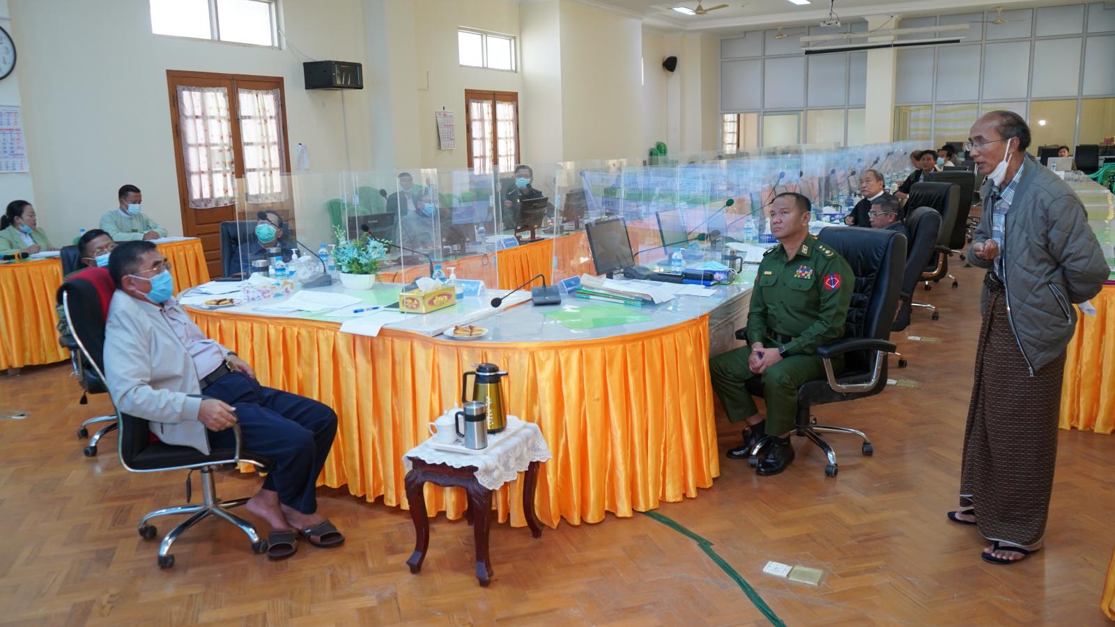 ထို့နောက် တင်ပြချက်များအပေါ် ပြည်နယ်အစိုးရအဖွဲ့အတွင်းရေးမှူး ဦးမောင်မောင်ဆန်းက ပြည်နယ်အတွင်းရှိ မြို့နယ်များအလိုက် Mask Campaign များ ပိုမိုဆောင်ရွက်ပေးရန် လိုအပ်မှု၊ ကိုဗစ်−၁၉ ရောဂါကာကွယ်ရေးသုံးပစ္စည်းများ လိုအပ်ချက်ရှိပါက အချိန်မီတင်ပြရန် လိုအပ်မှုတို့ကို ဖြည့်စွက်ဆွေးနွေးပြီး စစ်ဗျူဟာမှူး ဗိုလ်မှူးကြီး စောထွန်းမှလည်း ကိုဗစ်−၁၉ ရောဂါ ကာကွယ်ထိန်းချုပ်ရေးလုပ်ငန်းများတွင် ပူးပေါင်းဆောင်ရွက်မှု အခြေအနေများနှင့်ပတ်သက်၍ ဆွေးနွေးပြီး ပြည်နယ်အစိုးရအဖွဲ့ဝင် ဝန်ကြီးများ၊ ပြည်နယ်ဥပဒေချုပ်တို့က တစ်မြို့နယ်ချင်းအလိုက် အကြုံပြု သုံးသပ်ဆွေးနွေးကြသည်။