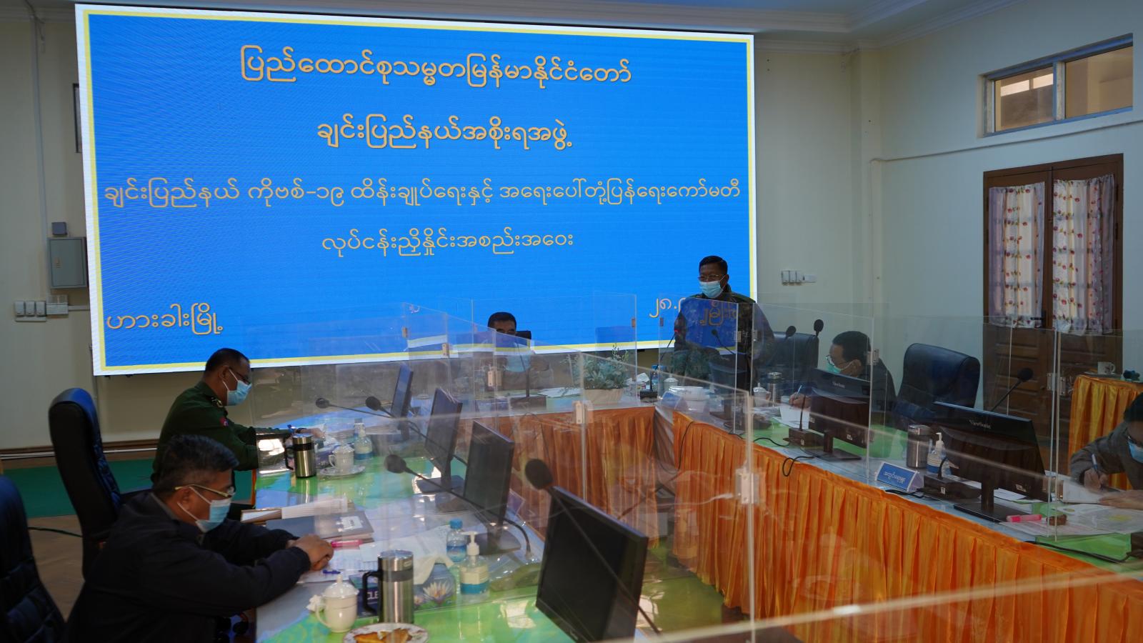 ချင်းပြည်နယ် ကိုဗစ်−၁၉ ထိန်းချုပ်ရေးနှင့် အရေးပေါ်တုံ့ပြန်ရေးကော်မတီ လုပ်ငန်းညှိနှိုင်းအစည်းအဝေးကို စက်တင်ဘာ ၂၈ ရက် နံနက် ၁၀ နာရီက ဟားခါးမြို့ ပြည်နယ်အစိုးရအဖွဲ့ရုံး အစည်းအဝေးခန်းမ၌ကျင်းပရာ ချင်းပြည်နယ်ဝန်ကြီးချုပ် ဒေါက်တာဝုန်ဆွန်းထန် တက်ရောက်အမှာစကား ပြောကြားသည်။