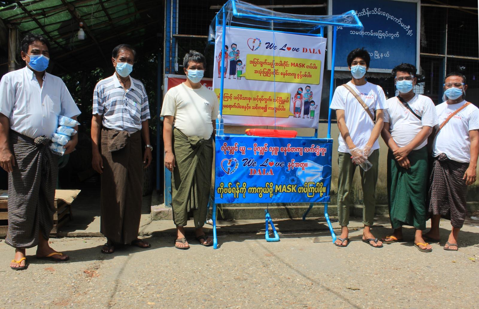 ထိုသို့ဆောင်ရွက်ပေးခြင်းနှင့် ပတ်သက်၍ We Love Dala အဖွဲ့ ဥက္ကဌ ကိုအောင်နိုင် က “ ကျွန်တော်တို့ မြို့နယ်မှာ တစ်နေ့ထက်တစ်နေ့ ပိုးတွေ့လူနာတွေများလာတယ်၊ အပြင်ထွက်တဲ့အခါ နှာခေါင်းစည်းမတပ်ဆင်ကြဘူး၊ ရန်ကုန်မြို့ကို အလုပ်သွားလုပ်တဲ့ ပြည်သူတွေများတဲ့ အတွက် လူစည်ကားရာနေရာတွေမှာ နှာခေါင်းစည်းများ ကို မည်သူမဆို အခမဲ့ယူနိုင်တဲ့ Mask Box များကို တပ်ဆင်ပေးခြင်းဖြစ်ပါတယ်၊ နှာခေါင်းစည်းဘူးများကို ကမာကဆစ်ဈေးကြီးမှာ ၃ ခု၊ အောင်ဇေယျဈေးကြီးမှာ ၂ ခု ၊ မြို့နယ်ပြည်သူ့ဆေးရုံမှာ ၁ ခု၊ မြို့နယ်လျှစ်စစ် မန်နေဂျာရုံးမှာ ၁ ခု၊ ခုလက်ရှိ အချိန်မှာ သမ္မတကမ်းခြေရပ်ကွက်မှာ ရှိတဲ့ ဈေးမှာ ၁ ခု၊ စက်တပ်သမ္ဗန် ကူးတို့ဆိပ်မှာ ၁ ခု၊ စုစုပေါင်း နှာခေါင်းစည်းဘူး ၉ ခုကို တပ်ဆင်ပေးခဲ့ပြီးဖြစ်ပါတယ်၊ ထပ်ပြီးတော့ လူစည်ကားရာနေရာများဖြစ်တဲ့ ကမာအောင်ကူးတို့ဆိပ်၊ ကမာကဆစ်ကူးတို့ဆိပ်၊ ကမာကသွယ်ကူးတို့ဆိပ်၊ စက်မြေကူးတို့ဆိပ်နှင့် မှော်စက် ကူးတို့ဆိပ်တို့တွင် ဆက်လက်၍ တပ်ဆင်ထားရှိပေးသွားမည်ဖြစ်ကြောင်း ” ပြောကြားခဲ့သည်။