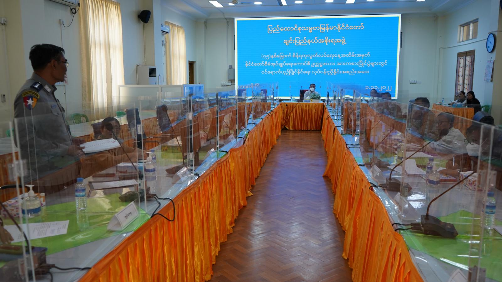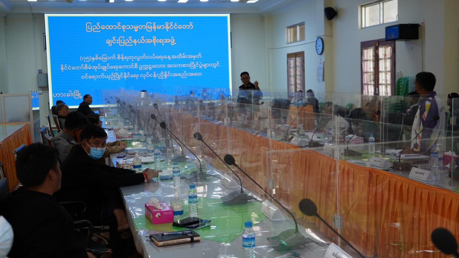 ထို့နောက် ပြည်နယ်အားကစားနှင့် ကာယပညာကော်မတီ ဒုတိယဥက္ကဋ္ဌ ချင်းပြည်နယ်အစိုးရအဖွဲ့ လူမှုရေးရာဝန်ကြီး ဦးသန့်ဇင်နှင့် ပြည်နယ်အားကစားနှင့် ကာယပညာကော်မတီ အတွင်းရေးမှူး၊ ပြည်နယ်အားကစားနှင့် ကာယပညာဦးစီးဌာနမှ ပြည်နယ်ဦးစီးမှူးကိုယ်စား လက်ထောက် ညွှန်ကြားရေးမှူးတို့က နိုင်ငံတော်စီမံအုပ်ချုပ်ကောင်စီဥက္ကဋ္ဌဖလား အားကစားပြိုင်ပွဲများသို့ ချင်းပြည်နယ်မှ ပါဝင်ယှဉ်ပြိုင်နိုင်ရေးအတွက် ကြိုတင်ပြင်ဆင်ဆောင်ရွက်ထားရှိမှု အခြေအနေများကို ရှင်းလင်းတင်ပြကြပြီး အစည်းအဝေးတက်ရောက်လာကြသည့် ပြည်နယ်အဆင့် အားကစားနှင့်ကာယပညာ ကော်မတီဝင်များက ဖြည့်စွက်ဆွေးနွေး တင်ပြကြသည်။