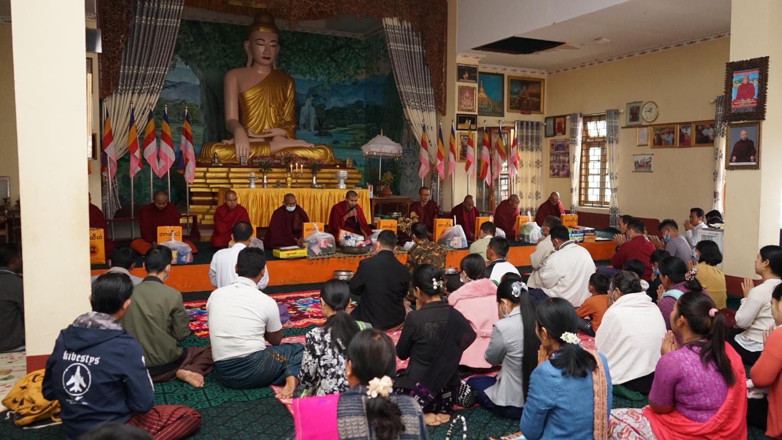 ဆက်လက်၍ ခရိုင်စီမံအုပ်ချုပ်ရေးအဖွဲ့ဉက္ကဋ္ဌ ဦးစောထွန်းဝင်း၊ အဖွဲဝင်(၁) ဒုတိယဗိုလ်မှူးကြီးဝင်းဇော်လတ် တို့က ကထိန်လျာမြတ်သင်္ကန်းနှင့် လှူဖွယ်ဝတ္ထုပစ္စည်းများ ဆက်ကပ်လှူဒါန်းကြသည်။ ထို့နောက် ဆရာတော် ဦးပညာဇောတ (B.A)(Buddisim)ထံမှ ဝမ်းမြောက်အနုမောဒနာ တရားနာကြားတော်မူကြပြီးနောက် လှူဒါန်းမှုအစုစု တို့အတွက် ရေစက်သွန်းချအမျှပေးဝေကြသည်။