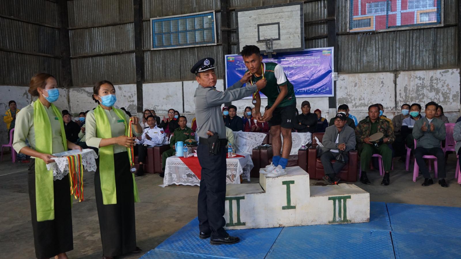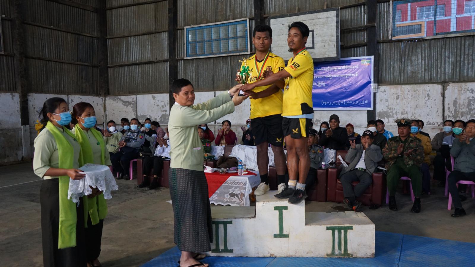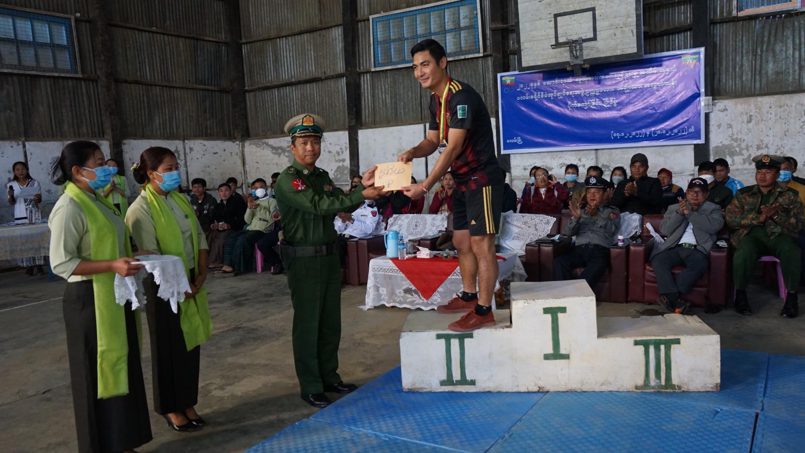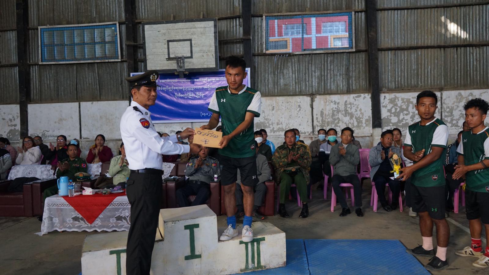 ထို့နောက်တတိယဆုရရှိသော အသင်းအားငွေသားဆုကို ခရိုင်စီမံအုပ်ချုပ်ရေးအဖွဲ့၊ အဖွဲ့ဝင်(၃)ဦးရေချမ်းက လည်းကောင်း၊ လည်ဆွဲပြားဆုများကို အတွင်းရေးမှူး ဒုတိယရဲမှူးကြီးမိုးနိုင် ကလည်းကောင်း၊ ဒုတိယဆုရရှိသောဂျိုကာ အသင်းအားလည်ဆွဲ ပြားနှင့်ငွေသားဆုကို အဖွဲ့ဝင်(၁) ဒုတိယဗိုလ်မှူးကြီးဝင်းဇော်လတ်က လည်းကောင်း၊ ပထမဆုရရှိသော ပလက်စတားအသင်းအား ဆုကလပ်၊ လည်ဆွဲပါးနှင့်ငွေသားဆုကို ခရိုင်စီမံအုပ်ချုပ်ရေးအဖွဲ့ဥက္ကဋ္ဌ ဦးစောထွန်းဝင်းကလည်းကောင်း ဆုများအသီးသီး ချီးမြှင့်ခဲ့ကြကြောင်း သိရသည်။