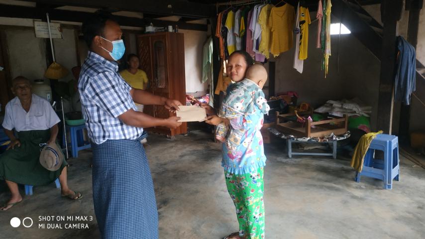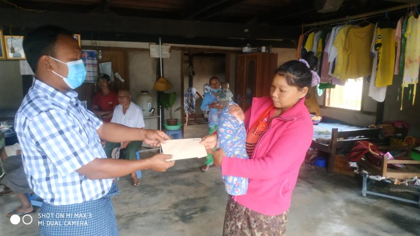 ထိုသို့ ထောက်ပံ့ပေးအပ်ရာတွင် အုပ်ချုပ်ရေးမှူးဦးစိုင်းစံဆာ နှင့်အဖွဲ့ဝင်များက ဦးဆောင်၍ ကန့်ကန်ကျေးရွာအတွင်း ကိုယ်ဝန်ဆောင်မိခင်(၆)ဦးနှင့် အသက်(၂)နှစ်အောက် ကလေးငယ်(၁)ဦး စုစုပေါင်း(၇)ဦးအတွက် တစ်ဦးလျှင်ကျပ် (၁၅၀၀၀/-)နှုန်းဖြင့်ဧပြီလမှ စက်တင်ဘာလအထိ (၆)လစာကျပ်(၆၃၀၀၀၀/-)ကို ပြည်သူလက်ဝယ်အရောက် သွားရောက် ထောက်ပံ့ပေးအပ်ကြောင်း သတင်းရရှိသည်။