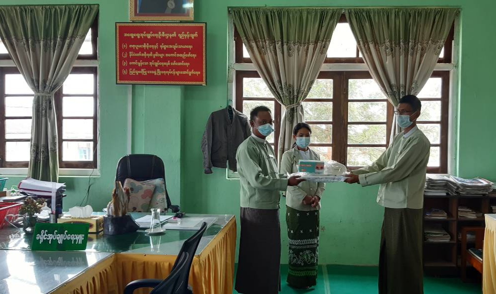 ခရိုင်ကိုဗစ်-၁၉ရောဂါ ထိန်းချုပ်ရေးနှင့် အရေးပေါ်တုံ့ပြန်ရေး ကော်မတီဥက္ကဋ္ဌ ဦးဇော်မိုးထိုက်က ချင်းပြည်နယ် အစိုးအရဖွဲ့မှ ထောက်ပံ့ပေးအပ်သည့် (PPE)ဝတ်စုံ(၆၀)စုံ၊ မျက်နှာအကာ(Face shield) (၆၀)ခုနှင့် (Mask)နှာခေါင်းစည်း (၄၀၀)ခုတို့အား မင်းတပ်မြို့နယ် ကိုဗစ်-၁၉ရောဂါ ကာကွယ် ထိန်းချုပ်ရေးနှင့် အရေးပေါ်တုံ့ပြန်ရေး ကော်မတီဥက္ကဋ္ဌ ဦးမင်းဧရာထိုက်ထံသို့ လွှဲပြောင်းပေးအပ်ခဲ့သည်။