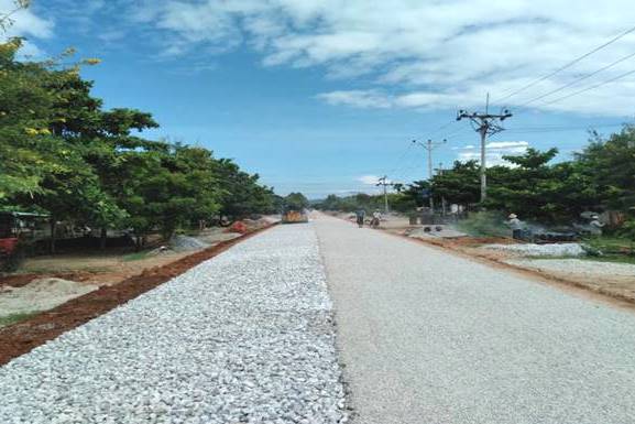 ပြန်လည်ပြုပြင်ပေခဲ့သည့် လမ်းနေရာများမှာ လမ်း၏ (၄.၈၃) ကီလိုမီတာမှ (၆.၀၃) ကီလိုမီတာအတွင်း မူလ(၁.၂)ကီလိမီတာအရှည်၊ (၅.၅)ကီလိုမီတာအကျယ်ကတ္တရာလမ်းမျက်နှာပြင်အား တူးထုတ်ပြီး (၅၀/၁၀၀) မီလီမီတာ ကျောက်ဖြည့်ခင်းကြိတ်ပြီး (၇၅) မီလီမီတာအောက်အရွယ် ကျောက်များဖြင့် (၁၀၀)မီလီမီတာထု အခြေခံအလွှာခင်းခြင်း၊ (၂၅/၅၀) မီလီမီတာကျောက်များဖြင့် (၇၅)မီလီမီတာထု အပွန်ခံလွှာခင်းခြင်း၊ (၃၇.၅) မီလီမီတာထုအဝင် ကတ္တရာလောင်းခြင်းနှင့် ကတ္တရာရေပိတ် အလွှာလောင်းခြင်း၊ လမ်းပုခုံးပြုပြင်ခြင်း လုပ်ငန်းများဖြစ်ပြီး လုပ်ငန်းများကို တိုင်းဒေသကြီး ခွင့်ပြုရန်ပုံငွေကျပ်(၁၁၁.၇၀)သန်း အကုန်အကျခံကာ မြို့နယ်လမ်းဦးစီး ဌာနမှ တာဝန်ယူဆောင်ရွက်ခဲ့ခြင်း ဖြစ်ကြောင်း သိရသည်။