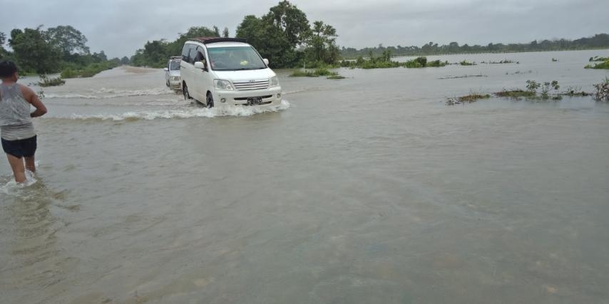 ကချင်ပြည်နယ်၊ မြစ်ကြီးနားခရိုင်၊ တနိုင်းမြို့နယ်တွင် ယနေ့နံနက် ၃ နာရီအချိန်မှစတင်၍ မိုးများအဆက် မပြတ်ရွာသွန်းမှုကြောင့် နမ္မတီး-တနိုင်း-ပန်ဆောင်လမ်း နန်ဖြတ်ယန်ကျေးရွာအနီး မိုင်တိုင် Km-112+500ရှိ အန်ဂိုးပိုက်အား ရေတိုက်စားခြင်းကြောင့် လမ်းသားပျက်စီးသွားသဖြင့် ယာဉ်များသွားလာမှု ပြတ်တောက် လျက်ရှိပြီး တိန်ကောက်ကျေးရွာအဝင် Km 108+500တွင်လည်း လမ်းပေါ် အနက်(၃)ပေခန့်၊ အရှည်ပေ(၇၀)ခန့် ရေကျော်နေ၍ ယာဉ်များသွားလာမရသဖြင့် ယာဉ်များသွားလာနိုင်ရေး ဆောင်ရွက်ရန် တနိုင်းမြို့နယ် လမ်းဦးစီးဌာနမှ Loderယာဉ်၊ မြေသယ်ယာဉ်များ စတင်စေလွှတ်ထားရှိပြီး ယာဉ်များသွားလာမှု ပြတ်တောက်မှု မရှိစေရေး ပျက်စီးသွားသော လမ်းပိုင်းအား အမြန်ပြုပြင် ဆောင်ရွက်ပေးသွားမည် ဖြစ်ကြောင်း သိရသည်။