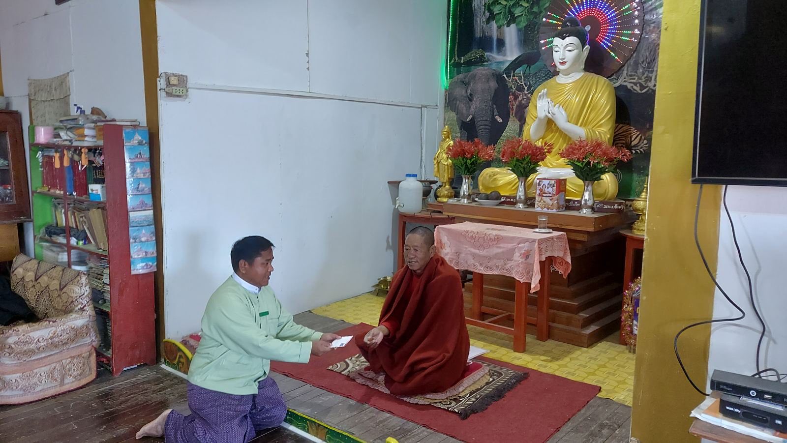 အလားတူခရိုင်အုပ်ချုပ်ရေးမှူး ဦးအောင်ချမ်းငြိမ်း၊ မြို့နယ်အုပ်ချုပ်ရေးမှူး ဦးဖြိုးဝင်းသန်းတို့ ဦးဆောင်ပါဝင်သည့် ဗုဒ္ဓဘာသာဌာနဆိုင်ရာ (၁၈)ဦးမှလည်း တီးတိန်ခရိုင် အထွေထွေအုပ်ချုပ်ရေးဦးစီးဌာန၊ ဘုရားခန်းမတွင် အပြင်အောင်ခြင်း (၈)ပါး လင်္ကာရွတ် ဖတ်ပူဇော်ပွဲအား နံနက် (၀၈၁၀)နာရီအချိန်မှ (၀၈၃၀)အချိန်ထိ ရွတ်ဖတ် ပူဇော်ခဲ့ကြကြောင်း သိသည်။