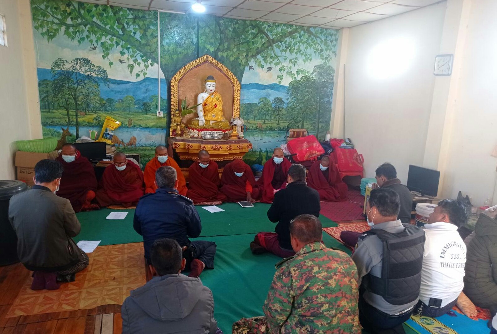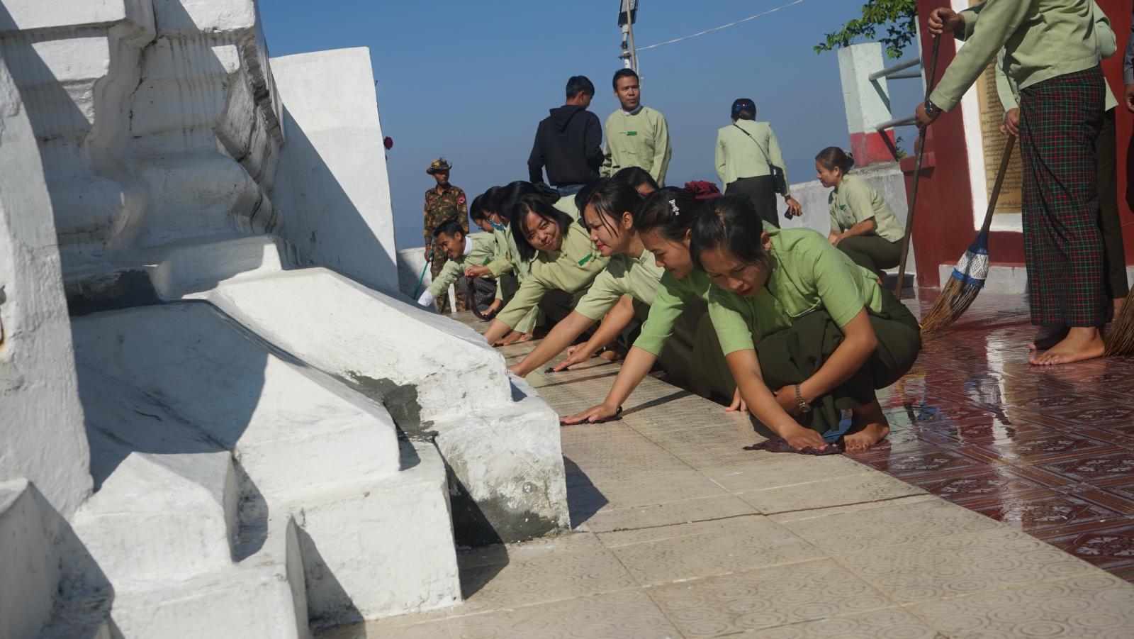 ချင်းပြည်နယ်၊ ဖလမ်းမြို့၌ အတွင်းအောင်ခြင်း(၈)ပါး အပြင်အောင်ခြင်း(၈)ပါးပါဠိနှင့် ဓဇဂ္ဂသုတ် ပရိတ်တော်မြတ်ရွတ်ပွားပူဇော်ခြင်းနှင့် ဘုရားစေတီပုထိုးများအား စုပေါင်းသန့်ရှင်းရေး ဆောင်ရွက်ခြင်းကို ယမန်နေ့ နံနက်ပိုင်းကဖလမ်းမြို့၊ ကျင်မွာလ်ရပ်ကွက်၊ ရန်ပြေမာန်ပြေနိုင်ငံအေး အောင်တော်မူဓာတ်ပေါင်းစုဆုတောင်း ပြည့်စေတီတော်၌ စုပေါင်းဆောင်ရွက်လျက်ရှိကြောင်း သိရသည်။