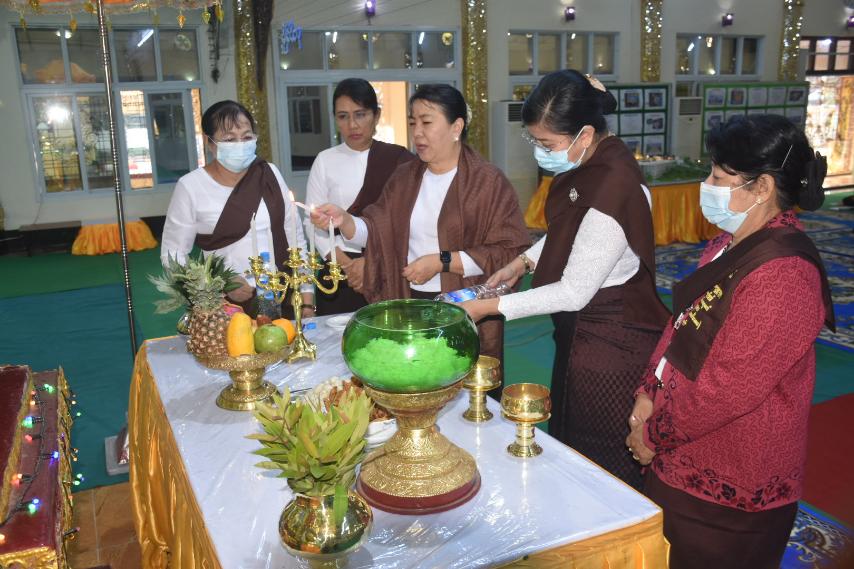 ပရိတ်ဂါထာတော်များ ရွတ်ဖတ်ပူဇော်ခြင်းအခမ်းအနားတွင် ဧရာဝတီတိုင်းဒေသကြီး အစိုးရအဖွဲ့ ဝန်ကြီးချုပ်၏ဇနီး၊ တိုင်းဒေသကြီးအစိုးရအဖွဲ့ဝင် ဝန်ကြီးများ၏ ဇနီးများ၊ တိုင်းခရိုင်နှင့် မြို့နယ်အဆင့် ဌာနဆိုင်ရာများမှ ဝတ်ရွတ်အဖွဲ့များက စိန်ရောင်ခြည်ဂါထာဖြင့်ဘုရားပင့်ပူဇော်ခြင်း၊ နတ်ဗြဟ္မာများအား ပင့်ဆောင်ခြင်း၊ အပြင်အောင်ခြင်း(၈)ပါး မြန်မာပြန်နှင့် ဓဇဂ္ဂသုတ်ပရိတ်တော် များရွတ်ဖတ်ပူဇော်ခြင်း၊ နတ်ဗြဟ္မာများပြန်လည်ပို့ဆောင်ခြင်း၊ မေတ္တာပို့ခြင်းတို့ကို စုပေါင်းရွတ်ဖတ် ပူဇော်ခဲ့ကြသည်။