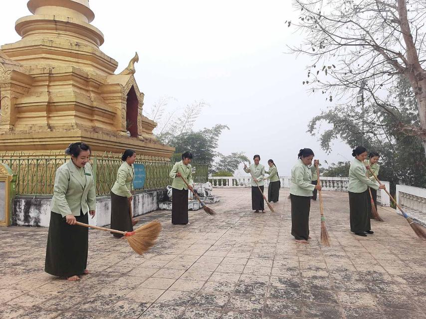 ထိုသို့ စုပေါင်းသန့်ရှင်းရေး ဆောင်ရွက်ရာတွင် တီးတိန်ခရိုင် စီမံအုပ်ချုပ်ရေးအဖွဲ့ဥက္ကဋ္ဌ ဦးအောင်ချမ်းငြိမ်းနှင့် အဖွဲ့ဝင်များ၊ မြို့နယ်စီမံအုပ်ချုပ်ရေးအဖွဲ့ဥက္ကဋ္ဌ ဦးဖြိုးဝင်းသန်းနှင့် အဖွဲ့ဝင်များ၊ ဌာနဆိုင်ရာများ၊ လူမှုရေးအသင်းအဖွဲ့များက စေတီတော်ပတ်ဝန်းကျင် ချုံနွယ်ပေါင်းမြက် ရှင်းလင်းခြင်း၊ စေတီတော်ရင်ပြင်အတွင်း တံမြက်စည်းလှည်းခြင်းများ ဆောင်ရွက်ကြောင်း သိရသည်။