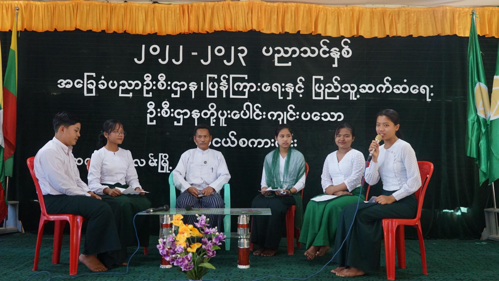 ဆက်လက်၍လက်ထောက်ညွှန်ကြားရေးမှူး ဦးရှိန်းတမ်ဦးဆောင်မှုဖြင့် အမှတ်(၁) အခြေခံပညာအထက် တန်းကျောင်းမှ ကျောင်းသူမငွန်ရှန်းပါရ်နှင့် မကျုံးစင်မွေး၊အမှတ်(၂) အခြေခံပညာ အထက်တန်းကျောင်း မှကျောင်းသား မောင်ခန့်စည်သူနိုင်နှင့် ကျောင်းသူမချောနဒီ၊ အမှတ်(၃)အခြေခံပညာ အထက်တန်းကျောင်းမှ ကျောင်းသူမဗန်အဲမ်းမွေဟုန်းတို့က ဗလငါးတန်ဖွံ့ဖြိုး တိုးတက်ရေးခေါင်းစဉ်ဖြင့် ဆွေးနွေးခဲ့ကြသည်။