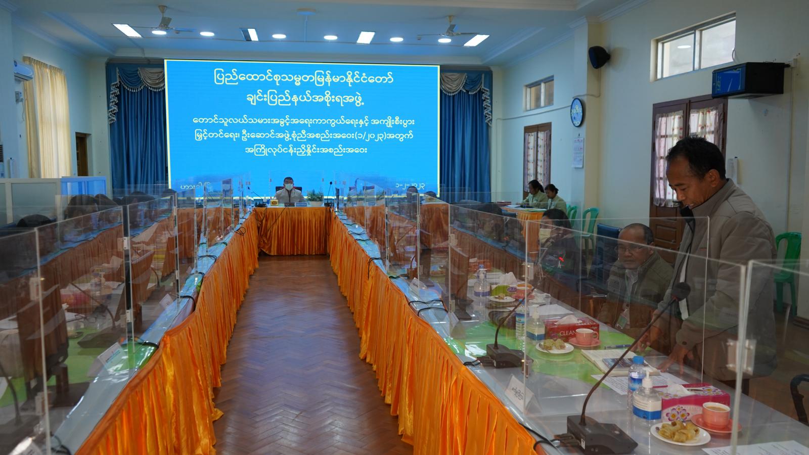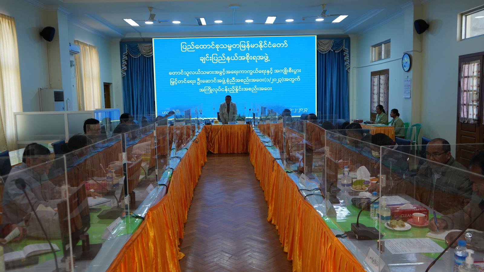 ထို့နောက် တောင်သူလယ်သမားအခွင့်အရေး ကာကွယ်ရေးနှင့် အကျိုးစီးပွားမြှင့်တင်ရေး၊ ဦးဆောင် အဖွဲ့တွင် ပါဝင်သော ပြည်နယ်စိုက်ပျိုးရေးဦးစီးဌာန၊ မွေးမြူရေးနှင့်ကုသရေးဦးစီးဌာန၊ ငါးလုပ်ငန်းဦးစီးဌာန၊ ဆည်မြောင်းနှင့် ရေအသုံးချမှုစီမံ ခန့်ခွဲရေးဦးစီးဌာန၊ သမဝါယမဦးစီးဌာန၊ ကျေးလက် ဒေသဖွံ့ဖြိုးတိုးတက်ရေးဦးစီးဌာန၊ အမှတ်(၃) ကုန်းမြင့်ဒေသ လယ်ယာမြေဖော်ထုတ်ရေး စီမံကိန်းရုံး၊ လမ်းဦးစီးဌာန၊ ကျေးလက်လမ်းဖွံ့ဖြိုးရေးဦးစီးဌာန၊ အသေးစား စက်မှုလက်မှု လုပ်ငန်း ဦးစီးဌာနနှင့် စက်မှုကြီးကြပ်ရေးနှင့် စစ်ဆေးရေးဦးစီးဌာနတို့မှ ပြည်နယ်ဦးစီးမှူးများက မိမိတို့ ကဏ္ဍအလိုက် ဆောင်ရွက်ထားရှိမှု အခြေအနေများကို ဆွေးနွေးတင်ပြကြသည်။