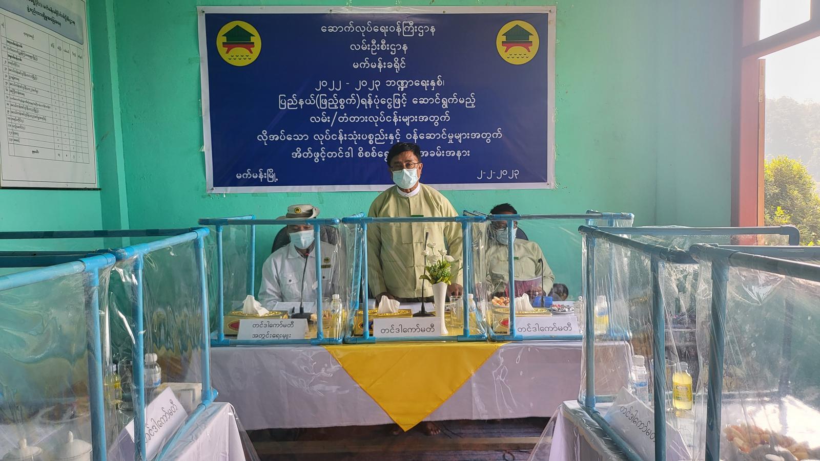 ရှမ်းပြည်နယ်(အရှေ့ပိုင်း) “ဝ”ကိုယ်ပိုင်အုပ်ချုပ်ခွင့်ရတိုင်း၊ မက်မန်းခရိုင်၊ မက်မန်းမြို့နယ်တွင် လမ်း/တံ တားလုပ်ငန်းများအတွက် လိုအပ်သော လုပ်ငန်းသုံးပစ္စည်းများနှင့် ဝန်ဆောင်မှုများအတွက် အိတ်ဖွင့်တင်ဒါ စိစစ်ရွေချယ်ပွဲအခမ်းအနားကို ယနေ့နံနက် ၁၀ နာရီအချိန်က မက်မန်းခရိုင် လမ်းဦးစီးဌာန အစည်းအဝေးခန်းမတွင် ကျင်းပခဲ့သည်။