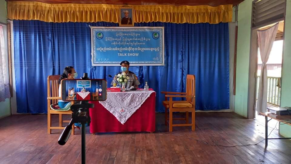 ရှေးဦးစွာ ပြန်ကြားရေးနှင့်ပြည်သူ့ဆက်ဆံရေးဦးစီးဌာန မြို့နယ်ဦးစီးမှူး ဒေါ်နန်းခမ်းခြူးက ပြန်ကြားရေးနှင့် ပြည်သူ့ဆက်ဆံရေးဦးစီးဌာန အနေဖြင့် ပြည်သူ့စာကြည့်တိုက်လုပ်ငန်း၊ နယ်လှည့် လုပ်ငန်း၊ ဟောပြောပွဲ၊ နံရံကပ်စာစောင်ပြသခြင်းလုပ်ငန်းနှင့် ဓာတ်ပုံပြသခြင်း လုပ်ငန်းများဖြင့် ပြည်သူများကို အသိပညာပေးခြင်းလုပ်ငန်းများ ဆောင်ရွက်လျက်ရှိရာ ယခုလိုကိုဗစ်-၁၉ ရောဂါ ကာကွယ်ထိန်းချုပ်နေသည့် ကာလအတွင်း ကျောင်းသား/ကျောင်းသူများနှင့် မိဘပြည်သူများ (Stay at Home) ကာလမှာ အသိပညာဗဟုသုတ တိုးပွားစေရေးအတွက် ပုံပြောခြင်း၊ ကဗျာရွတ်ခြင်း၊ စက္ကူခေါက်ခြင်းလုပ်ငန်းများကို စိတ်ဝင်စားဖွယ်ဖြစ်အောင် Online မှ တစ်ဆင့်တင်ဆက်လျက်ရှိကြောင်း ပြောကြားခဲ့သည်။