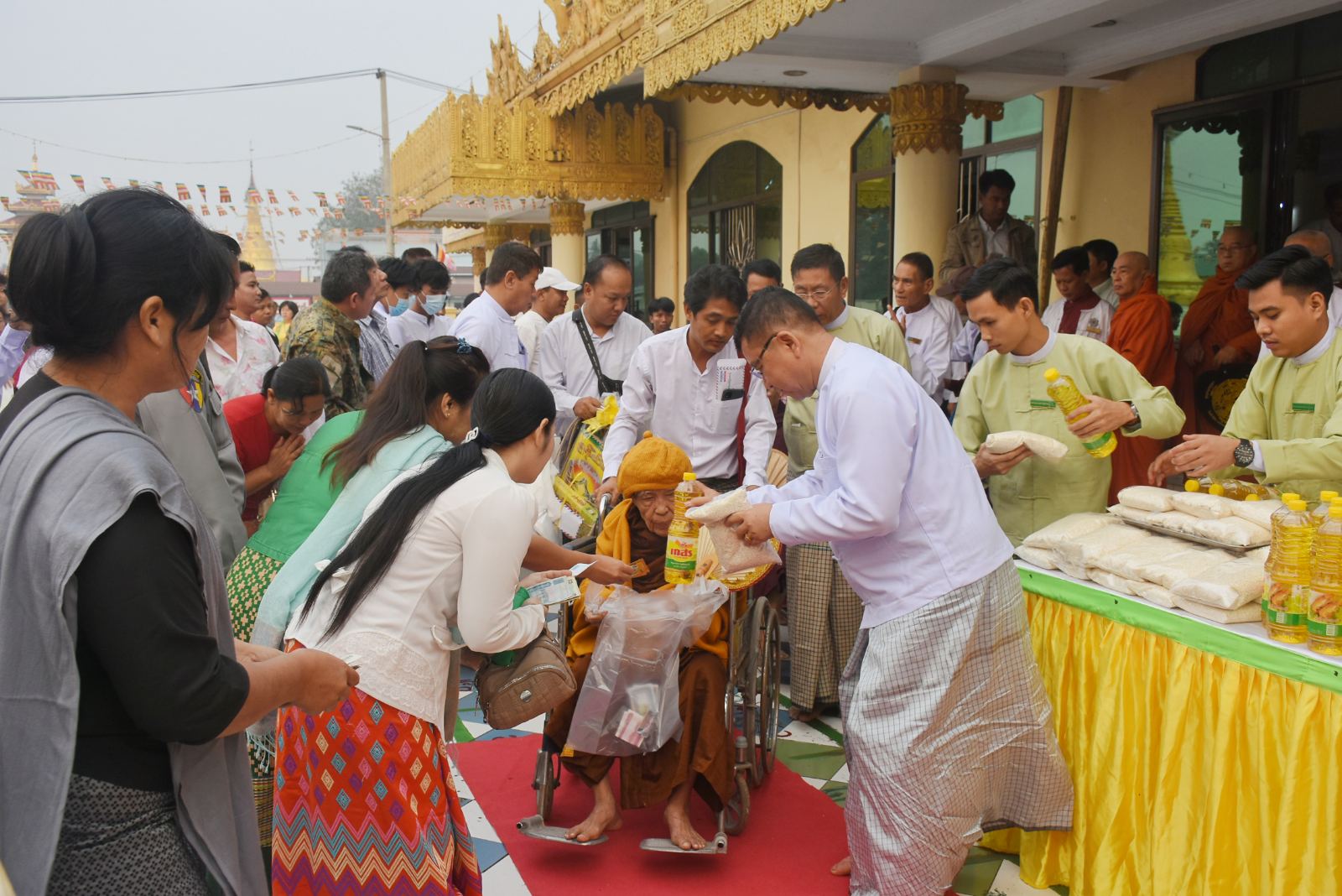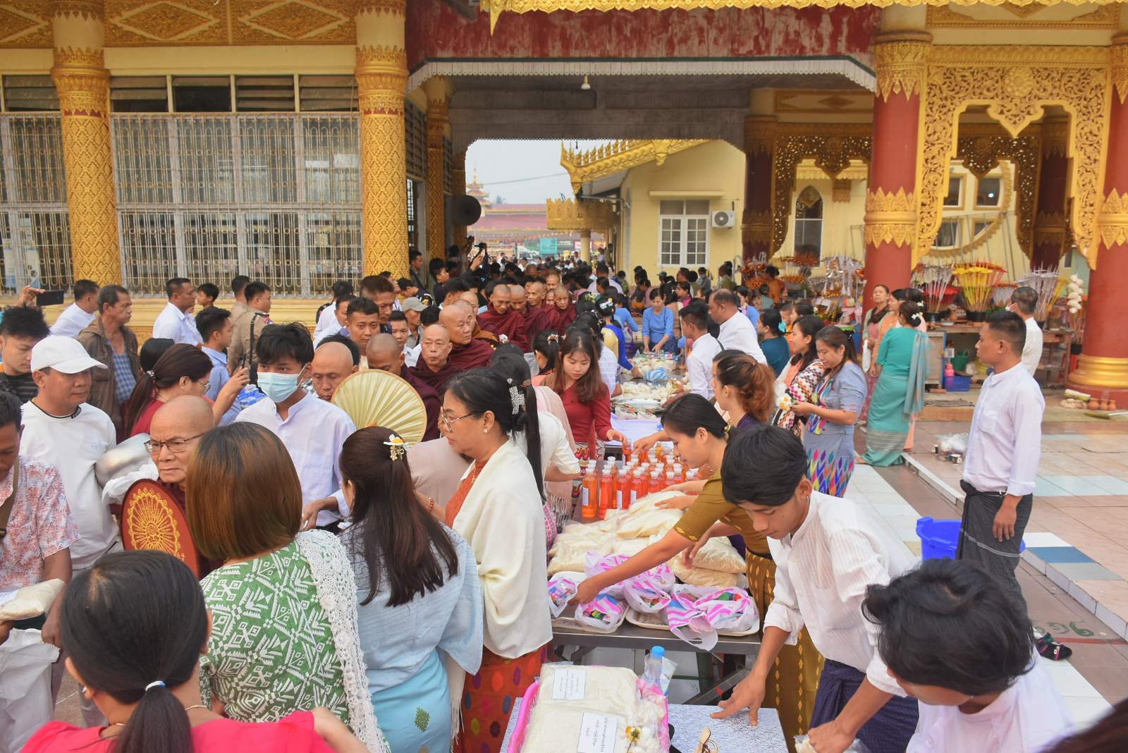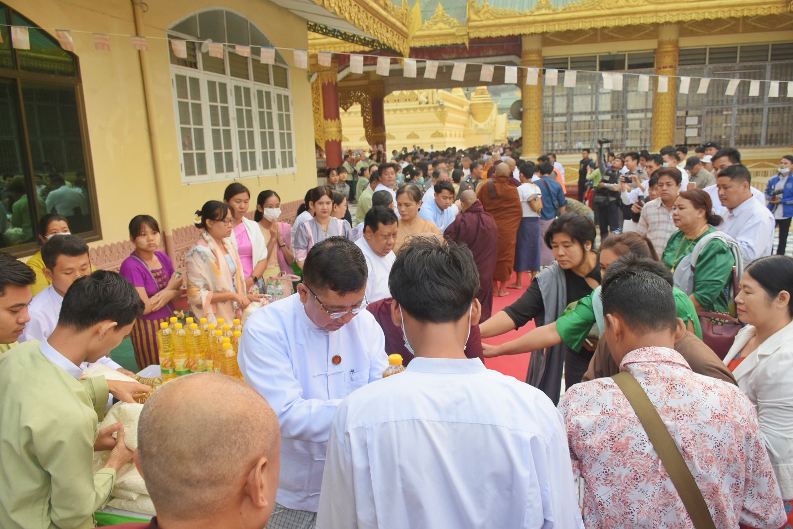 ထို့နောက် ပြည်နယ်ဝန်ကြီးချုပ်၊ ပြည်နယ်ဝန်ကြီးများ၊ ခရိုင်နှင့်မြို့နယ် ဌာန ဆိုင်ရာများ၊ အလှူရှင်များစုပေါင်းကာ ကြွရောက်လာကြသည့် ကျောင်းတိုက် အသီးသီးမှ ဆရာတော်၊ သံဃာတော် အရှင်သူမြတ်များအား ဆွမ်းဆန်စိမ်းနှင့် လှူဖွယ်ဝတ္ထုပစ္စည်းများ တပျော်တပါးလောင်းလှူခဲ့ကြကြောင်း သိရသည်။