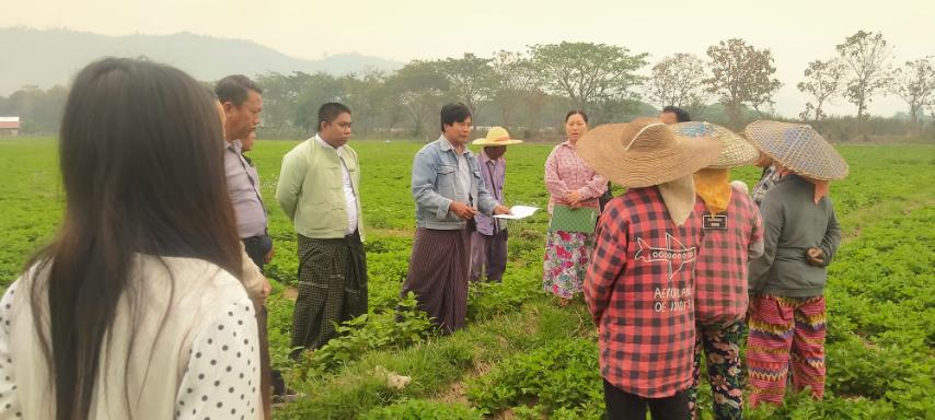 သည် မြစိမ်းရောင်စီမံကိန်းချေးငွေ ကျပ်သိန်း(၆၀၀)ရယူ၍ စိုက်ပျိုးရေးလုပ်ငန်း ဆောင်ရွက်သော ရွာမကွင်း၊ ကွင်းအမှတ်(၁၃၈)ရှိ တောင်သူဦးဆန်အောင်၏ မြေပဲစိုက်ခင်း(၂)ဧက၊ ပဲပုတ်စိုက်ခင်း(၂)ဧက၊ မြေထောင့်ပဲစိုက်ခင်း(၁)ဧကအား လည်းကောင်း၊ ရွာမကွင်း၊ ကွင်းအမှတ် (၁၃၈)ရှိ ဒေါ်စုစုဝေ၏ မြေပဲစိုက်ခင်း(၂)ဧက၊ ပဲပုတ်စိုက်ခင်း(၂)ဧက၊ မြေထောင့်ပဲစိုက်ခင်း (၁)ဧက အားလည်းကောင်း၊ ခုံဆင့်ကျေးရွာအုပ်စု၊ ခုံဆင့်ကျေးရွာမှ နိုင်ငံ့စီးပွားမြှင့်တင်ရေးရန်ပုံငွေဖြင့် မြစိမ်းရောင် စီမံကိန်းချေးငွေကျပ်သိန်း (၄၀၀) ရယူ၍ စိုက်ပျိုးရေးလုပ်ငန်းဆောင်ရွက်သော ရွာမကွင်း၊ ကွင်းအမှတ်(၁၄၅)ရှိ တောင်သူ ဒေါ်ရွှေရည်ဝင်း၏ မြေပဲစိုက်ခင်း(၄)ဧကအား လည်းကောင်း၊ ရွာမကွင်း၊ ကွင်းအမှတ် (၁၄၅)ရှိ ဒေါ်သန်းငွေ၏ ပဲပုတ်စိုက်ခင်း(၄)ဧက တို့အားမြေပြင်စိုက်ပျိုးထားရှိမှု အခြေအနေများ ကွင်းဆင်းကြည့်ရှု့ စစ်ဆေးခဲ့ကြောင်းသိရှိရသည်။