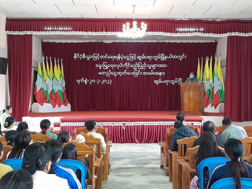 ကချင်ပြည်နယ်၊ ပူတာအိုခရိုင်၊ ဆွမ်ပရာဘွမ်မြို့တွင် နိုင်ငံ့စီးပွားမြှင်တင်ရေးရန်ပုံငွေဖြင့် ဝက်မွေးမြူရေး လုပ်ငန်းဆောင်ရွက်မည့် ပြည်သူများအား မတည်ရင်းနှီးငွေထုတ်ချေးပေးခြင်း အခမ်းအနားကို ယမန်နေ့ နံနက် ၁၁ နာရီက မြို့နယ်ဘန်ရူခန်းမ၌ ကျင်းပ ပြုလုပ်ခဲ့ကြောင်း သိရသည်။