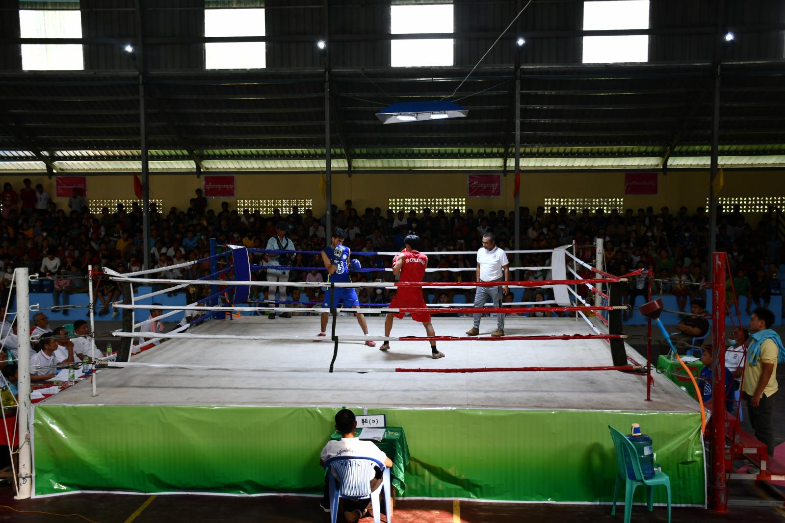 ကချင်ပြည်နယ်၊ ဗန်းမော်မြို့တွင် ၂၀၂၃ ခုနှစ် ခရိုင်စီမံအုပ်ချုပ်ရေးအဖွဲ့ ဥက္ကဋ္ဌဖလား ကလပ်ပေါင်းစုံ အမျိုးသား၊ အမျိုးသမီး လက်ဝှေ့ပြိုင်ပွဲဖွင့်ပွဲအခမ်းအနားကို ယမန်နေ့ မွန်းလွဲ (၂:၀၀) နာရီခန့်က ညောင်ပင်ရပ်ကွက်ရှိ ဗန်းမော်ခရိုင် မိုးလုံလေလုံပြည်သူ့အားကစားခန်းမ၌ ပြုလုပ်ခဲ့ကြောင်း သိရသည်။