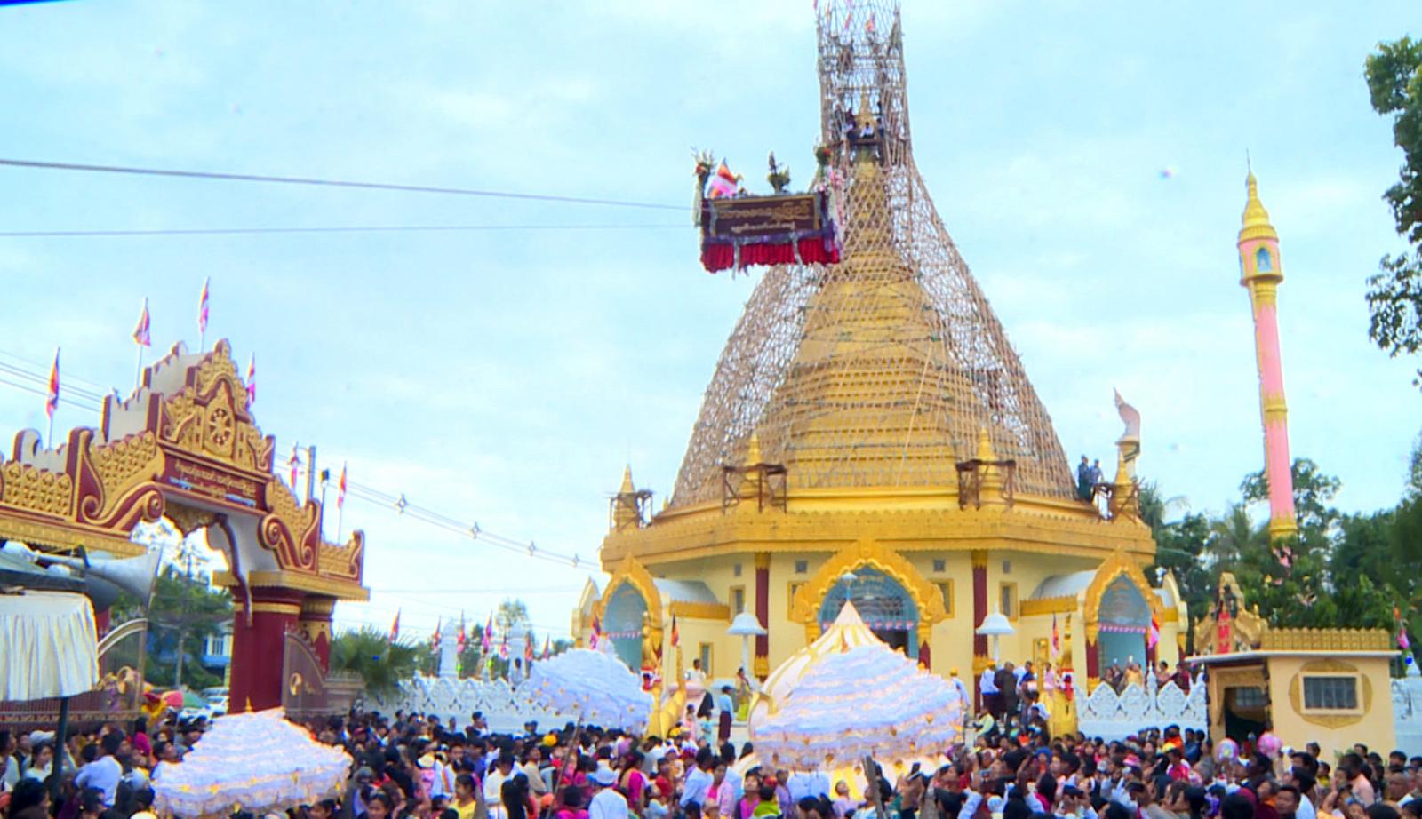 ယင်းနောက် စေတီတော်ကြီး၏ စိန်ဖူးတော်၊ ငှက်မျက်နားတော်၊ ရွှေကြုတ်တော်၊ ရွှေဟင်္သာ တော်များကို အလှူရှင်များ၊ ကုသိုလ်ကောင်းမှုပြုသူများနှင့်အတူ ရွှေထီးတော်အထွဋ်တင်လှူခြင်းနှင့် အရံစေတီတော်များ၏ ထီးတော်များ တင်လှူခြင်းတို့ကို ဆောင်ရွက်ခဲ့ကြပြီး ရတနာရွှေမိုး၊ ငွေမိုးများ ရွာသွန်းကြကာ ဆရာတော်သံဃာတော်များအား အလှူရှင်များက ဆွမ်းဆန်တော်နှင့် လှူဖွယ်ပစ္စည်း များကို လောင်းလှူပူဇော်ခဲ့ကြကြောင်း သိရှိရသည်။